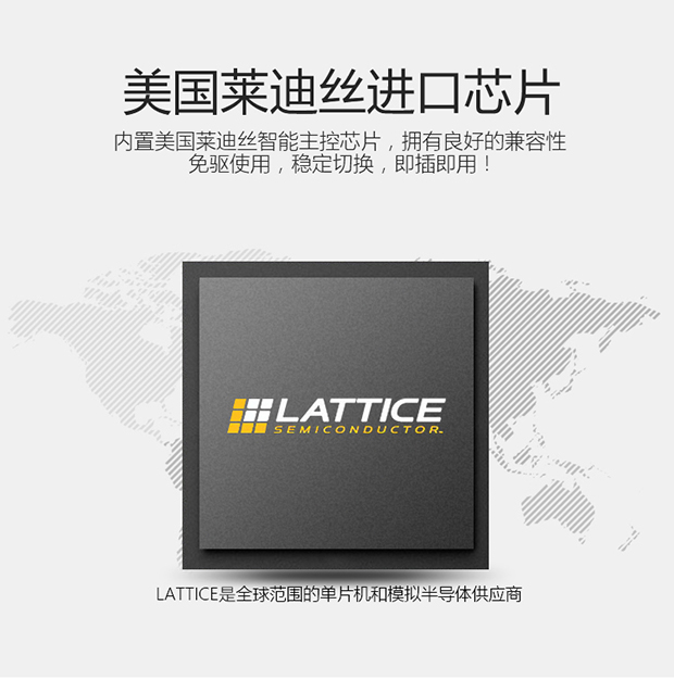 芯片我們更專業(yè),勝為KVM切換器采用內(nèi)置美國萊迪絲(LATTICEC超鏈接)主控芯片,擁有良好的兼容性免驅(qū)使用,穩(wěn)定切換,即插即用。