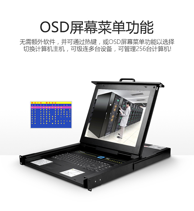 高清分辨率勝為KVM采用夏普原裝液晶屏,色澤細膩,光澤透亮LCD(MTBF)使用壽命>50000h,品質(zhì)為先,耐用持久,支持DDC智能識別分辨率。