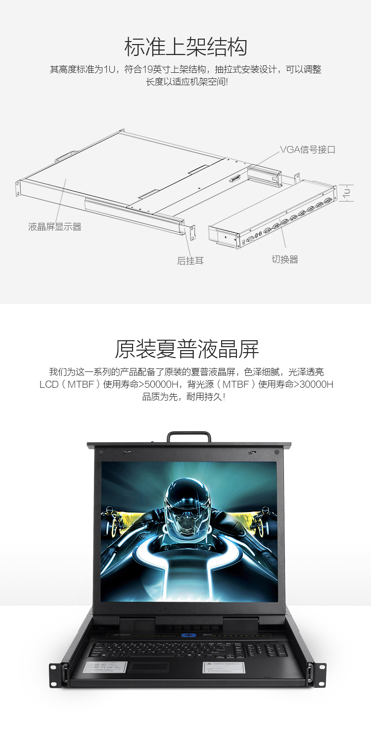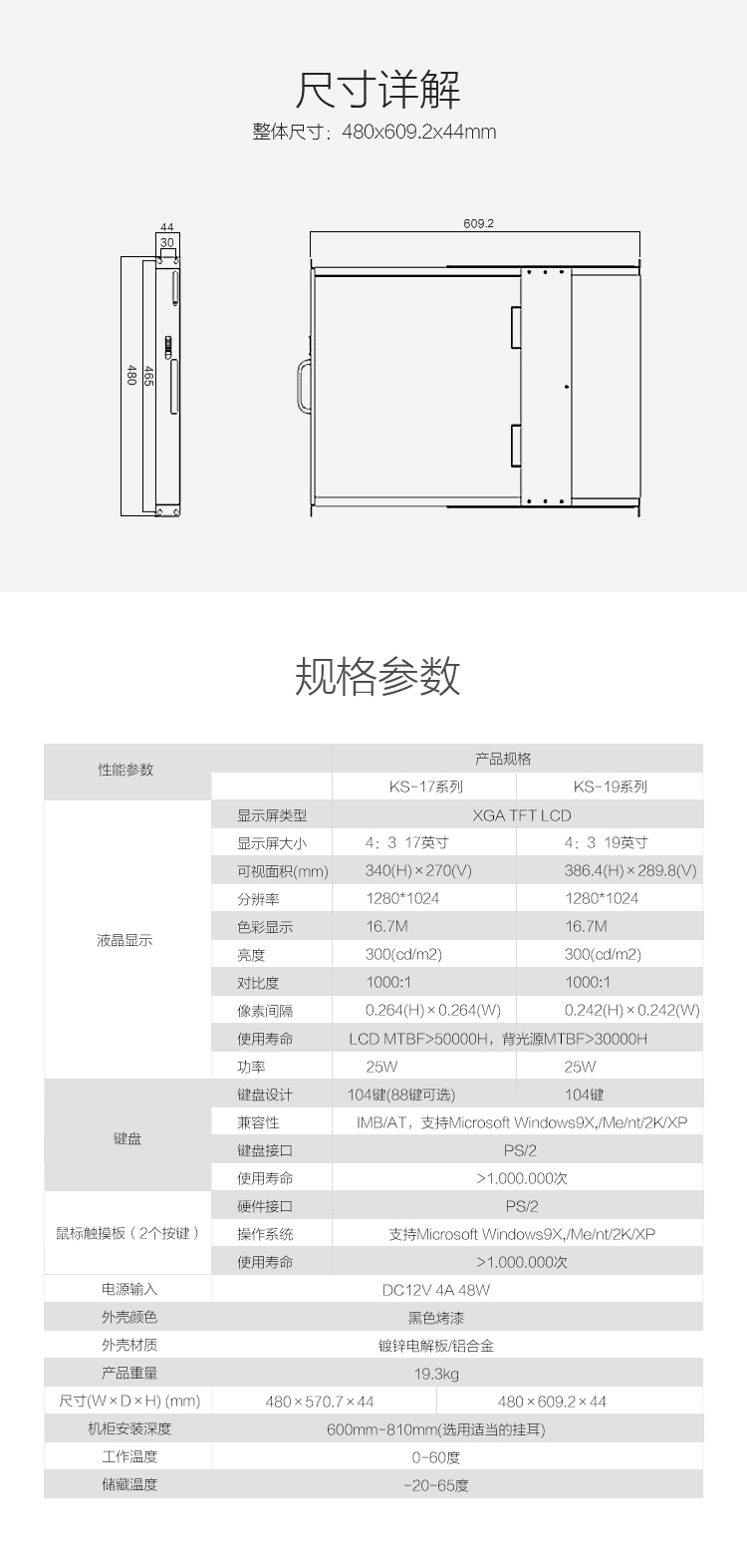 勝為LCD KVM 切換器有17英寸和19英寸兩種可以安裝在機(jī)架上,對(duì)于空間的節(jié)省非常實(shí)用。