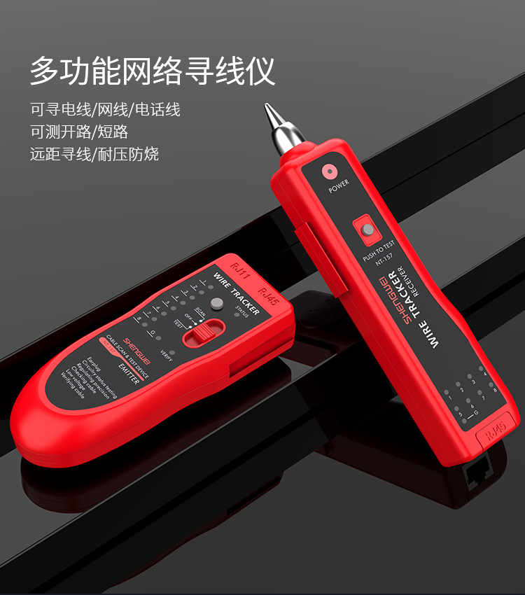勝為網(wǎng)絡(luò)尋線儀 多功能測試儀查線器 電話線斷路短路尋線器音頻網(wǎng)絡(luò)網(wǎng)線巡線儀測試器 紅 NT-157