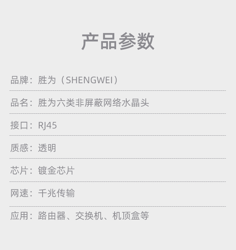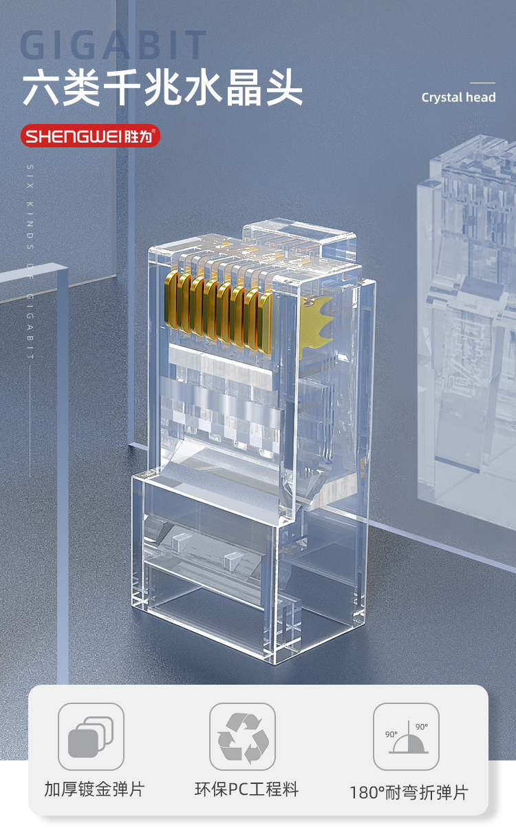 品名:勝為六類非屏蔽網(wǎng)絡(luò)水晶頭