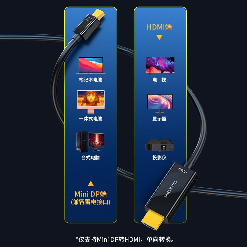勝為Mini-DP轉(zhuǎn)HDMI轉(zhuǎn)換器 surface/蘋果筆記本雷電接口高清4K 雷電轉(zhuǎn)HDMI公口-1080P 1.8米 MN-3080