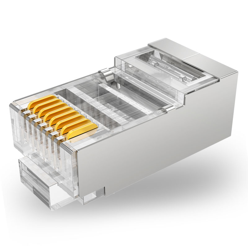 六類水晶頭10個/袋 CAT6千兆網(wǎng)線網(wǎng)絡(luò)連接頭工程級 勝為金屬屏蔽RJ45鍍金8芯寬帶線接頭?RC-9010?