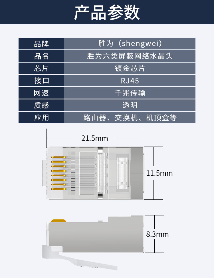 品名:勝為六類屏蔽網(wǎng)絡(luò)水晶頭