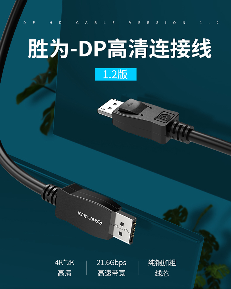 勝為DP高清線 2K*4KDisplayPort公對(duì)公連接線 電競筆記本電腦顯卡 DP-2010B