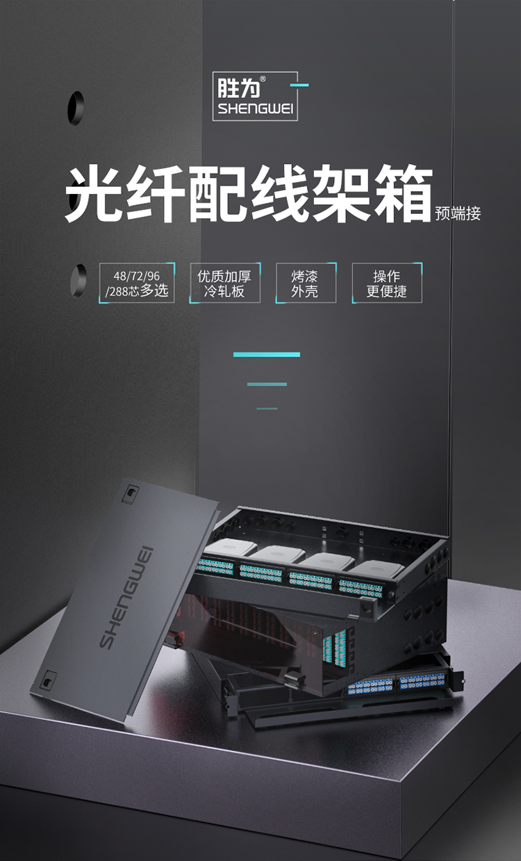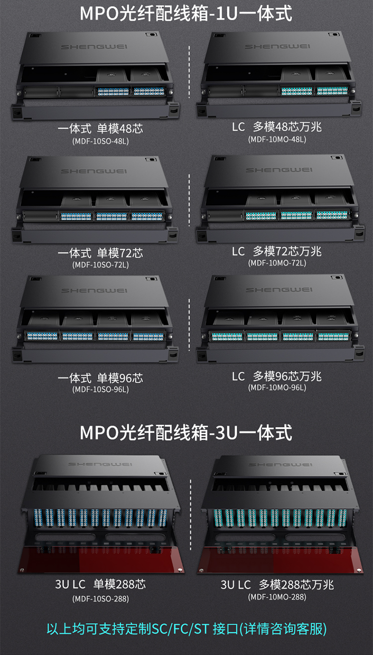 MPO光纖配線箱 96芯LC單模滿配 勝為高密度模塊化光纖終端盒配線架預(yù)端接分線箱 黑?MDF-20SO-96L