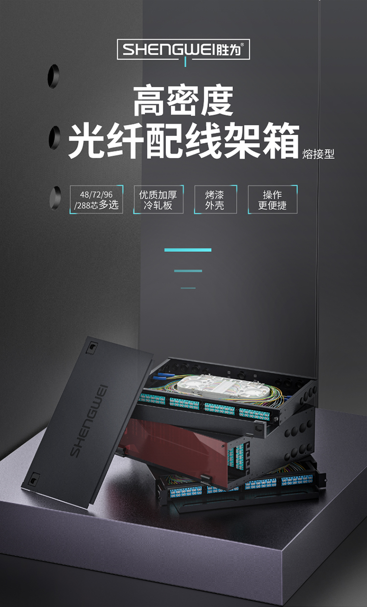 MPO-MTP光纖配線箱 72芯LC單模滿配 勝為高密度模塊化光纖續(xù)接盤配線架熔接分線箱 MDF-101S-72L?