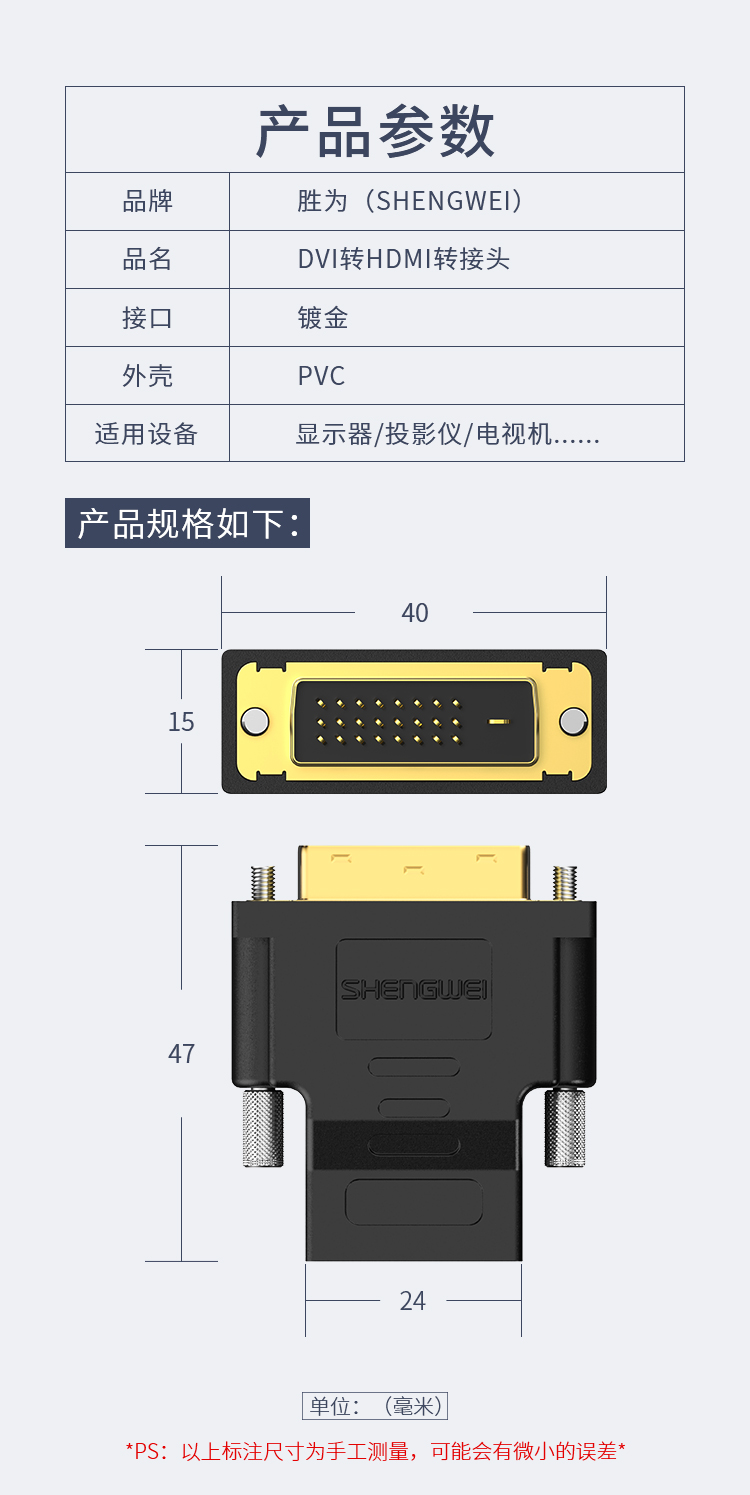 品名:DVI轉(zhuǎn)HDMI轉(zhuǎn)接頭