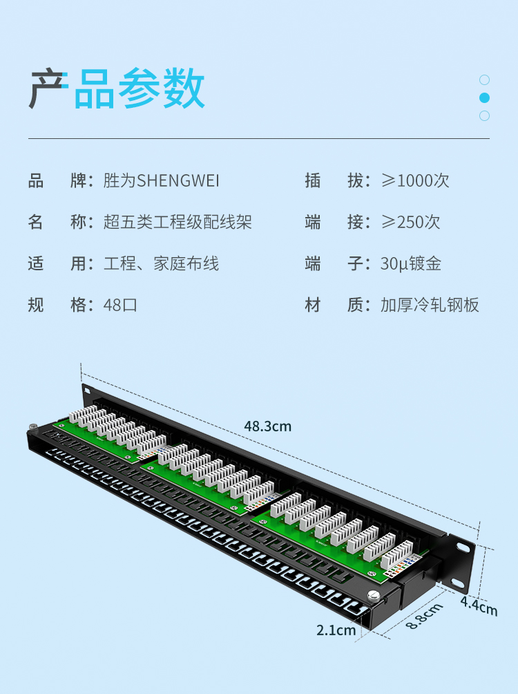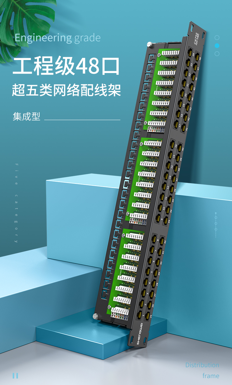 超五類配線架48口1U 工程級30U鍍金接口 勝為機(jī)架式網(wǎng)絡(luò)配線架 NDF-548G
