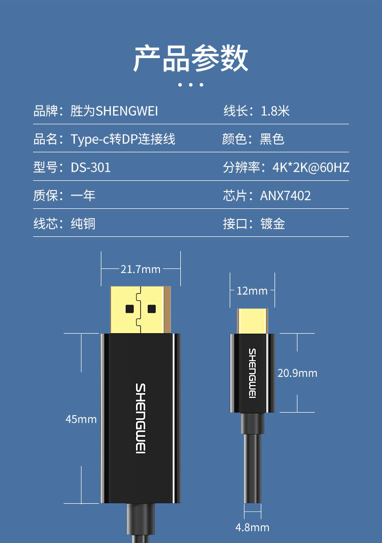 勝為Type-C轉(zhuǎn)DP連接線?DS-301