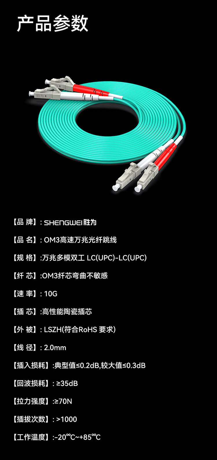 LC-LC萬(wàn)兆OM3多模雙芯光纖跳線 勝為 FOC-1030