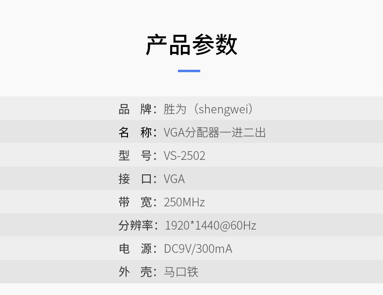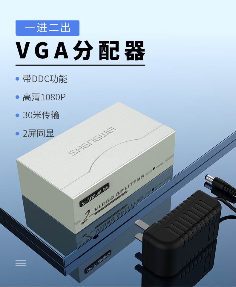 勝為1進(jìn)2出VGA分配器 VGA一分二分配器一進(jìn)二出筆記本電腦投影儀顯示器分屏器?VS-2502