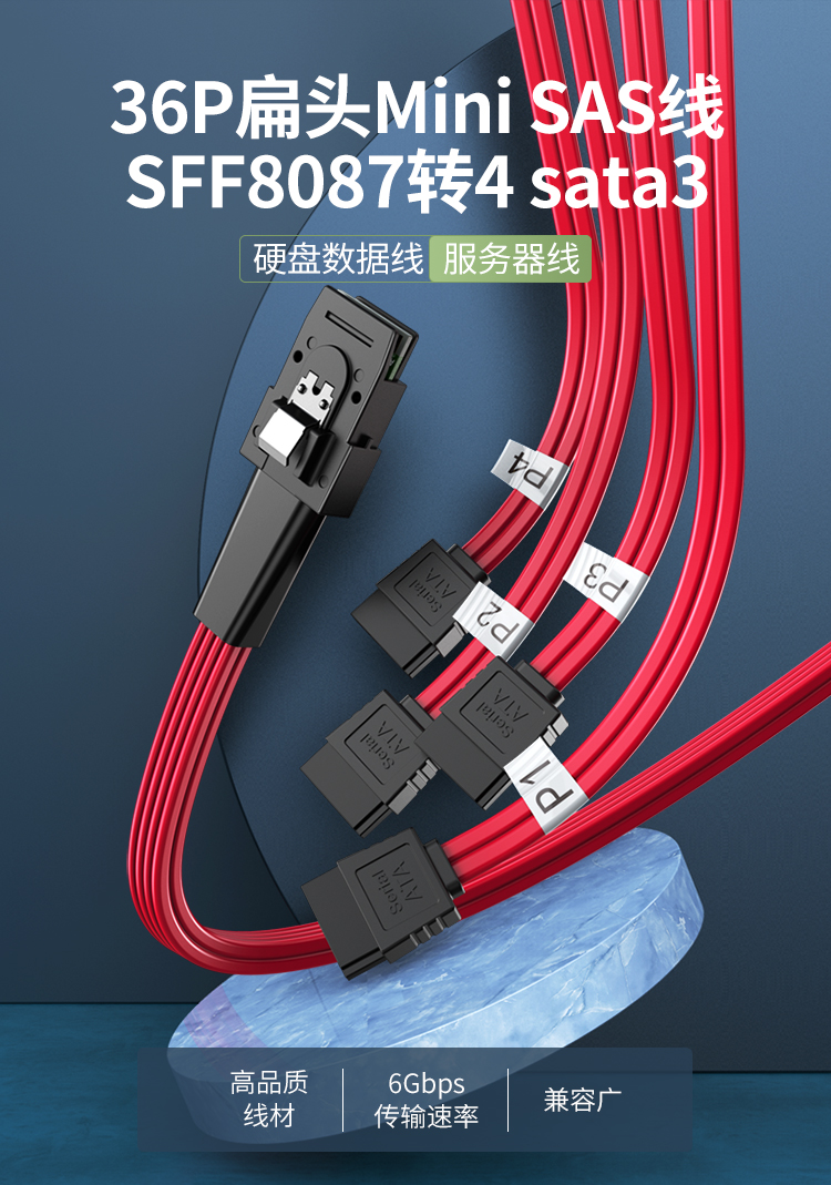 品名:36P扁頭Mini SAS線SFF8087轉(zhuǎn)4 sata3服務(wù)器硬盤數(shù)據(jù)線