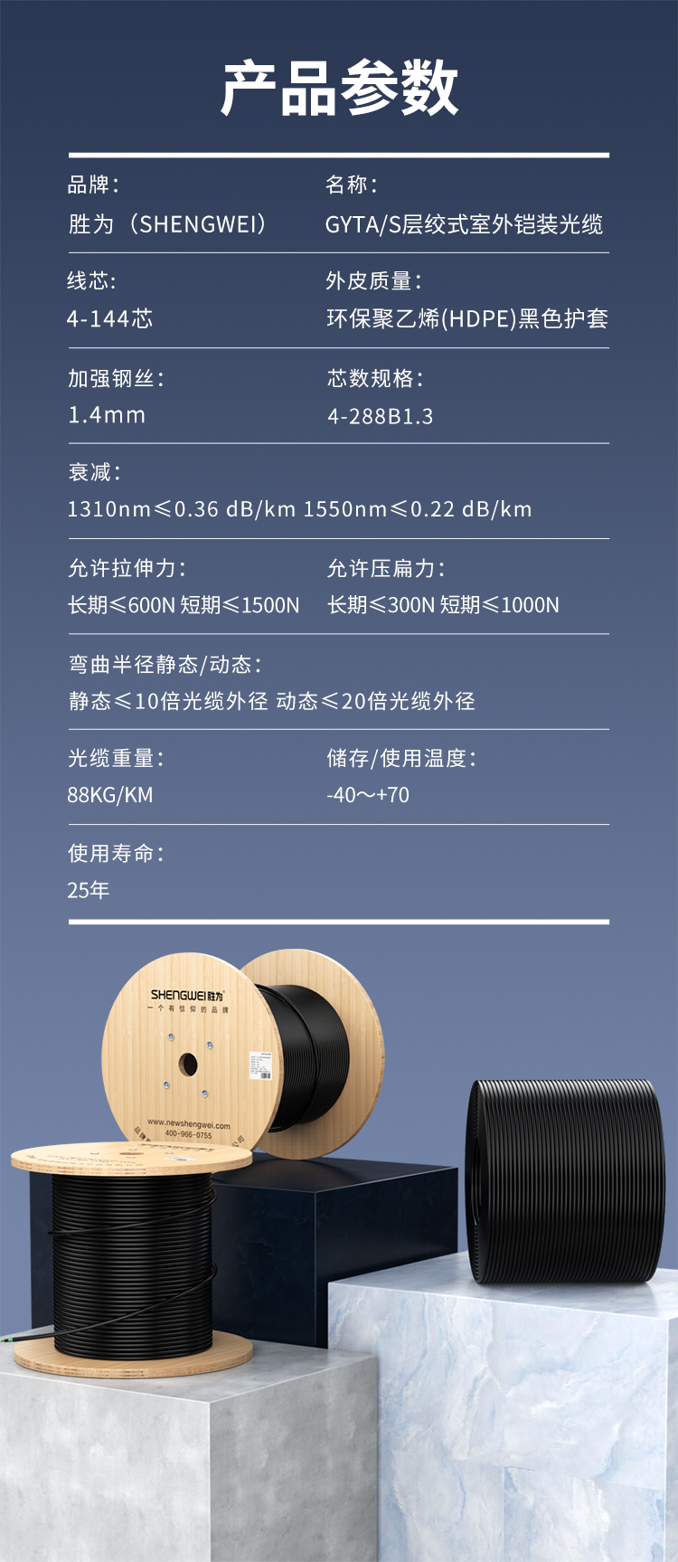 勝為GYTS室外單模層絞式鎧裝光纜