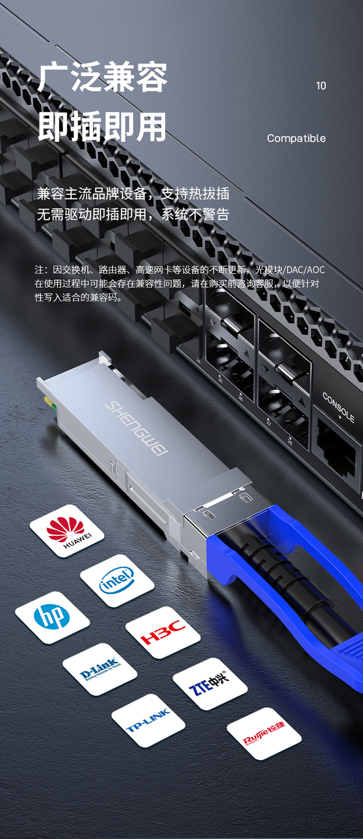 勝為高速電纜QSFP28 DAC堆疊線萬兆100G高速線纜光模塊 支持華為思科H3C曙光浪潮中興2米 XDAC0502