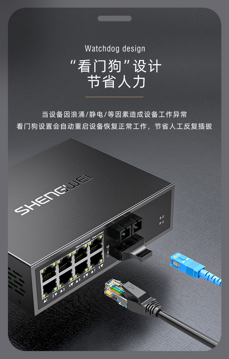 2光8電千兆單模雙纖 單個(gè)裝 勝為SC口光纖收發(fā)器 20KM BGHJ208G
