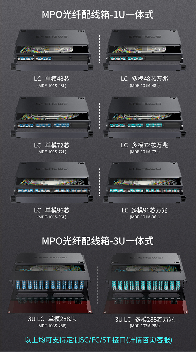 MPO-MTP配線箱 48芯LC萬(wàn)兆 滿配多模萬(wàn)兆OM3高密度光纖續(xù)接盤(pán)配線架熔接分線箱MDF-201M-48L