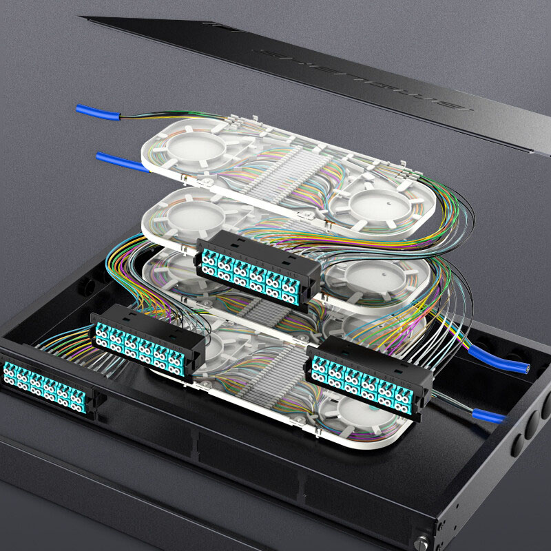MPO-MTP配線箱 72芯LC萬兆 滿配光纖配線箱多模萬兆OM3高密度光纖續(xù)接盤配線架熔接分線箱 MDF-201M-72L