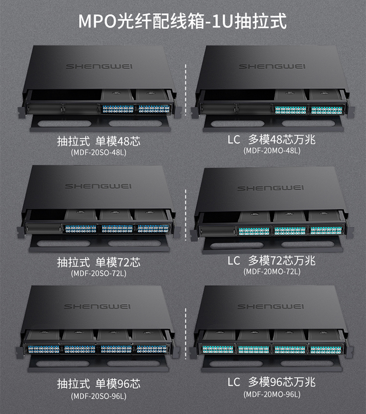 MPO光纖配線箱48芯LC萬兆滿配 勝為多模萬兆OM3高密度模塊化終端盒配線架預(yù)端接分線箱MDF-20MO-48L