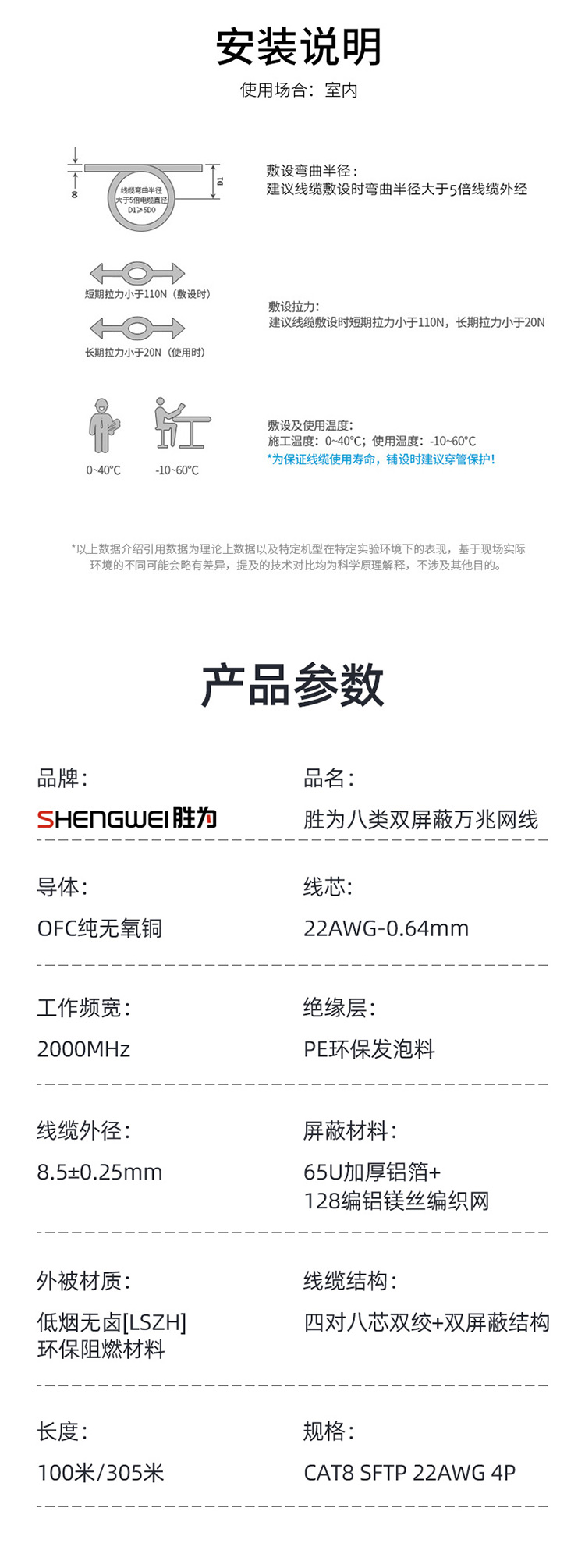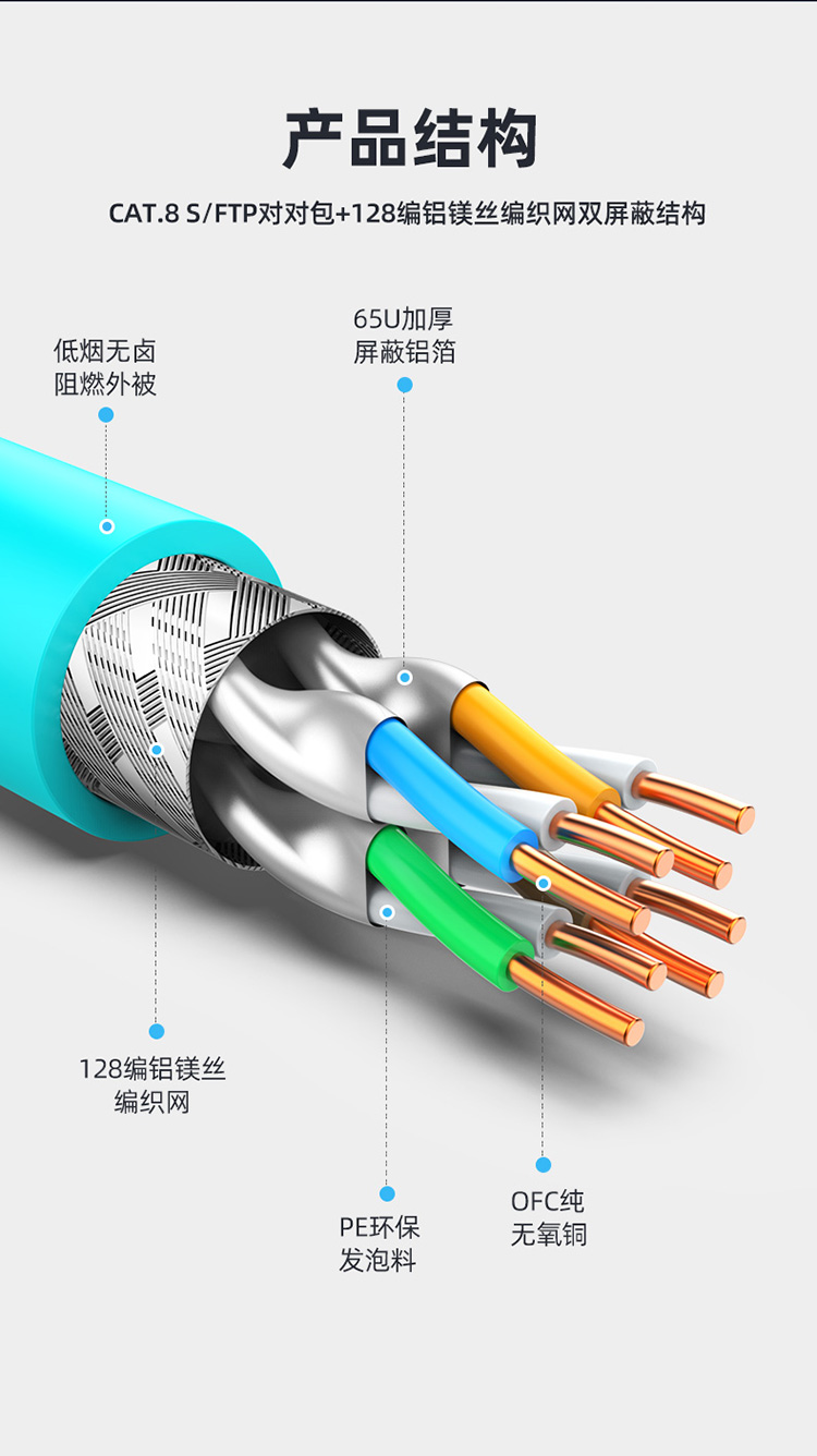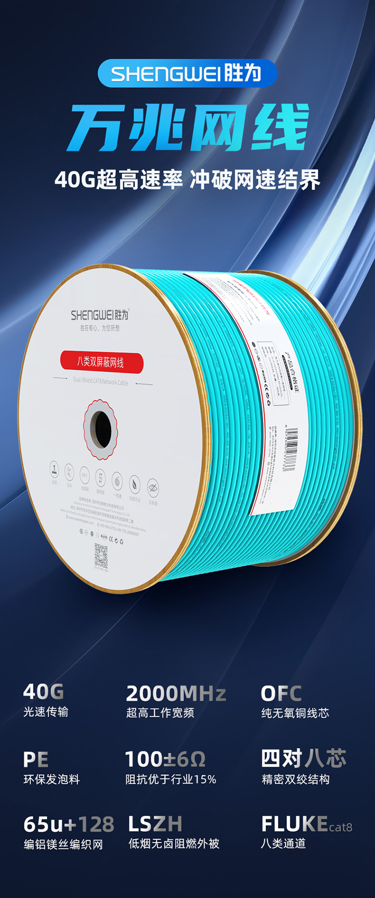 八類萬兆網(wǎng)線 雙屏蔽0.64mm無氧銅 勝為40G工程家裝 CAT8類網(wǎng)絡(luò)箱線低煙無鹵阻燃網(wǎng)線305米 CLC8064B