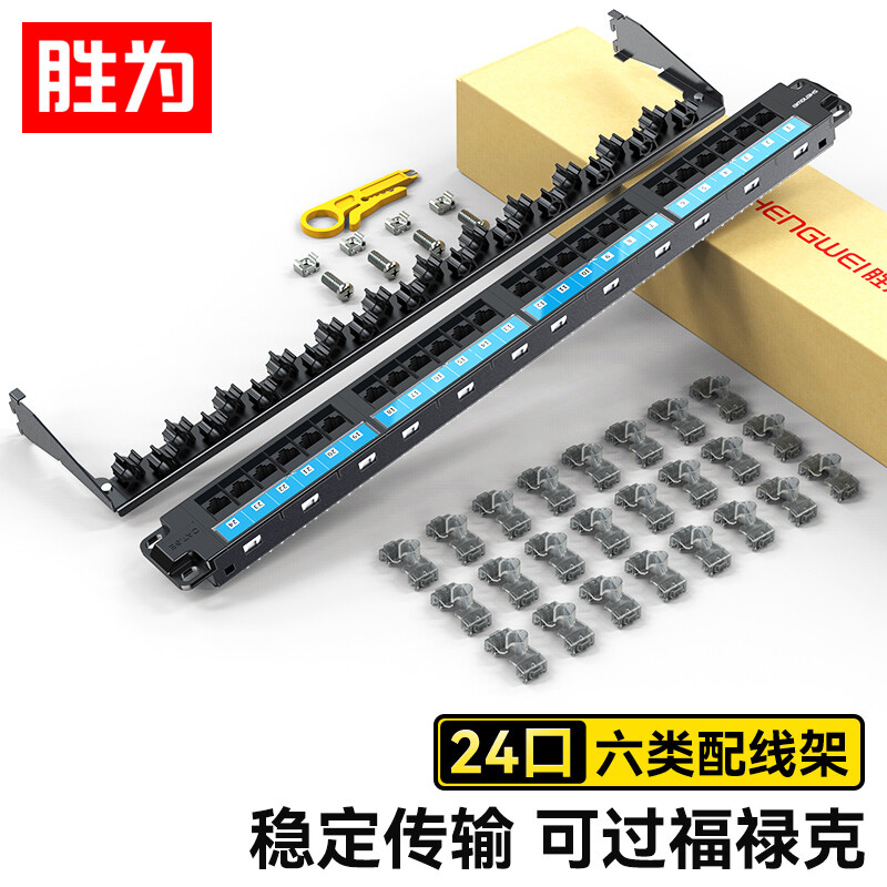 六類配線架24口 CAT6網(wǎng)線配線架 網(wǎng)絡(luò)級(jí)鍍金1U機(jī)架式機(jī)柜網(wǎng)絡(luò)跳線理線槽 CNDF624W