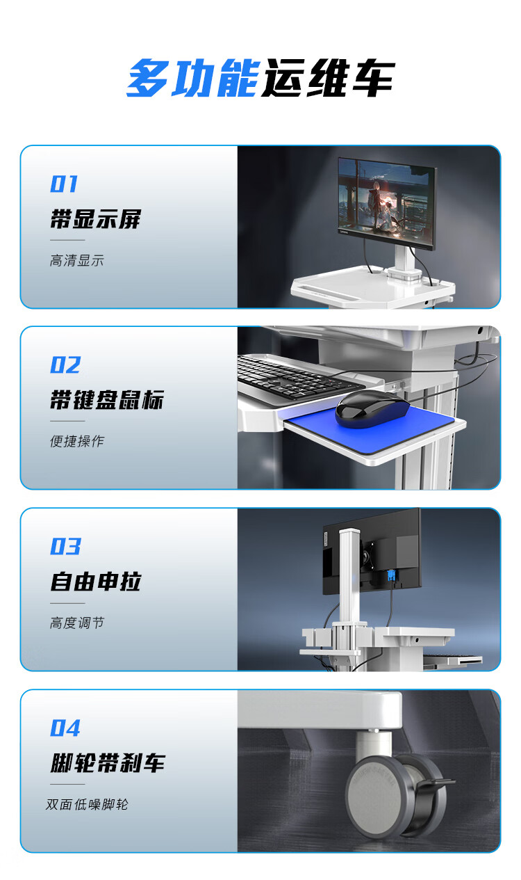 機(jī)房運(yùn)維推車KVM移動操作臺 運(yùn)維工作小推車 電腦顯示器鍵鼠套裝操作工作臺一體式移動機(jī)房推車 DJF0005J