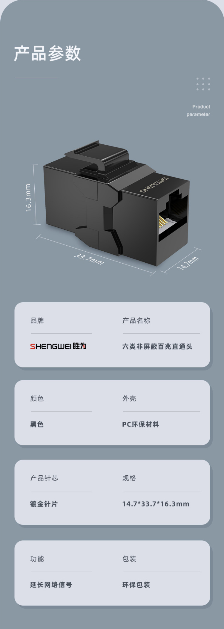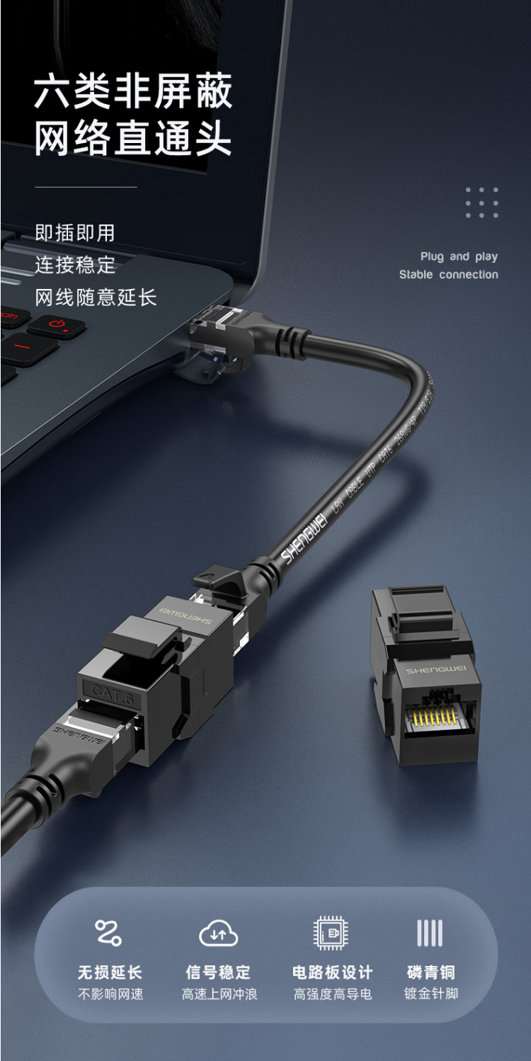 品名:六類(lèi)非屏蔽百兆直通頭