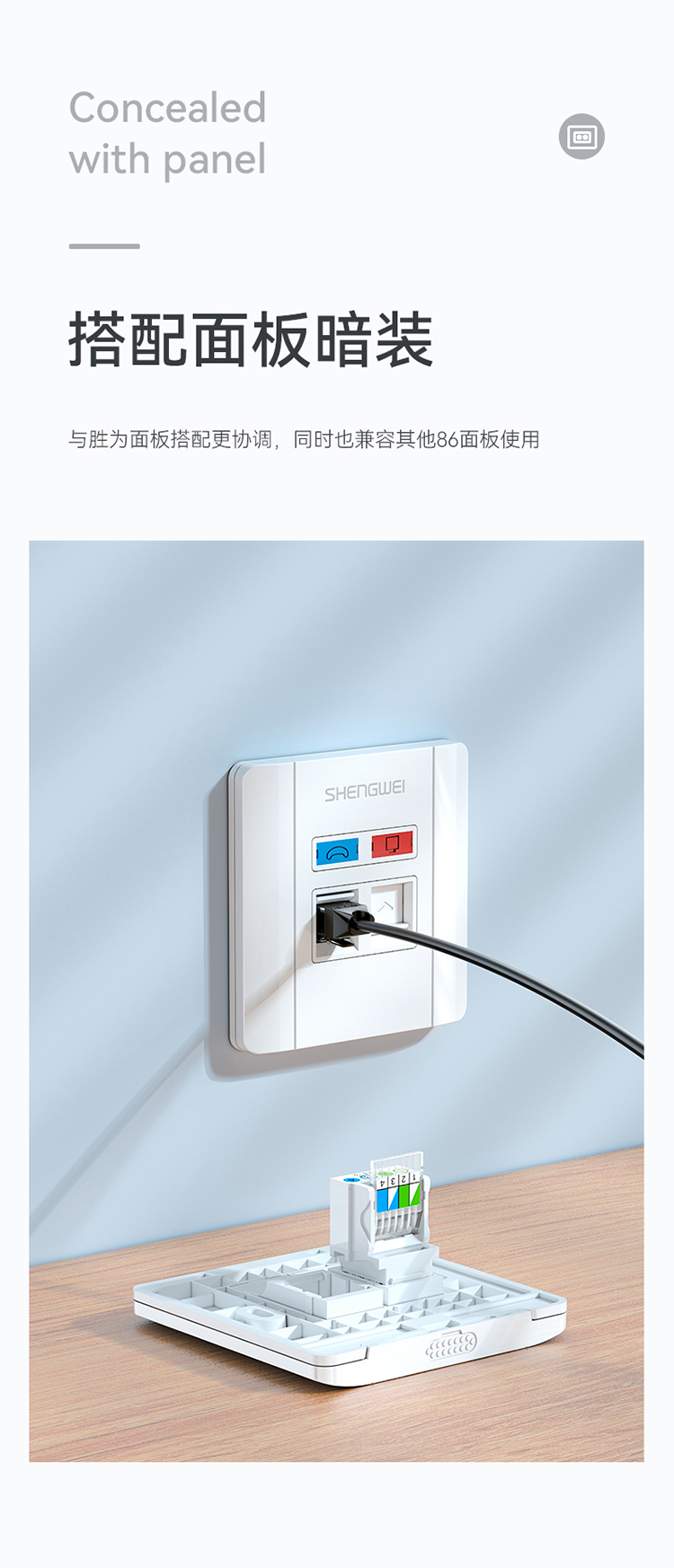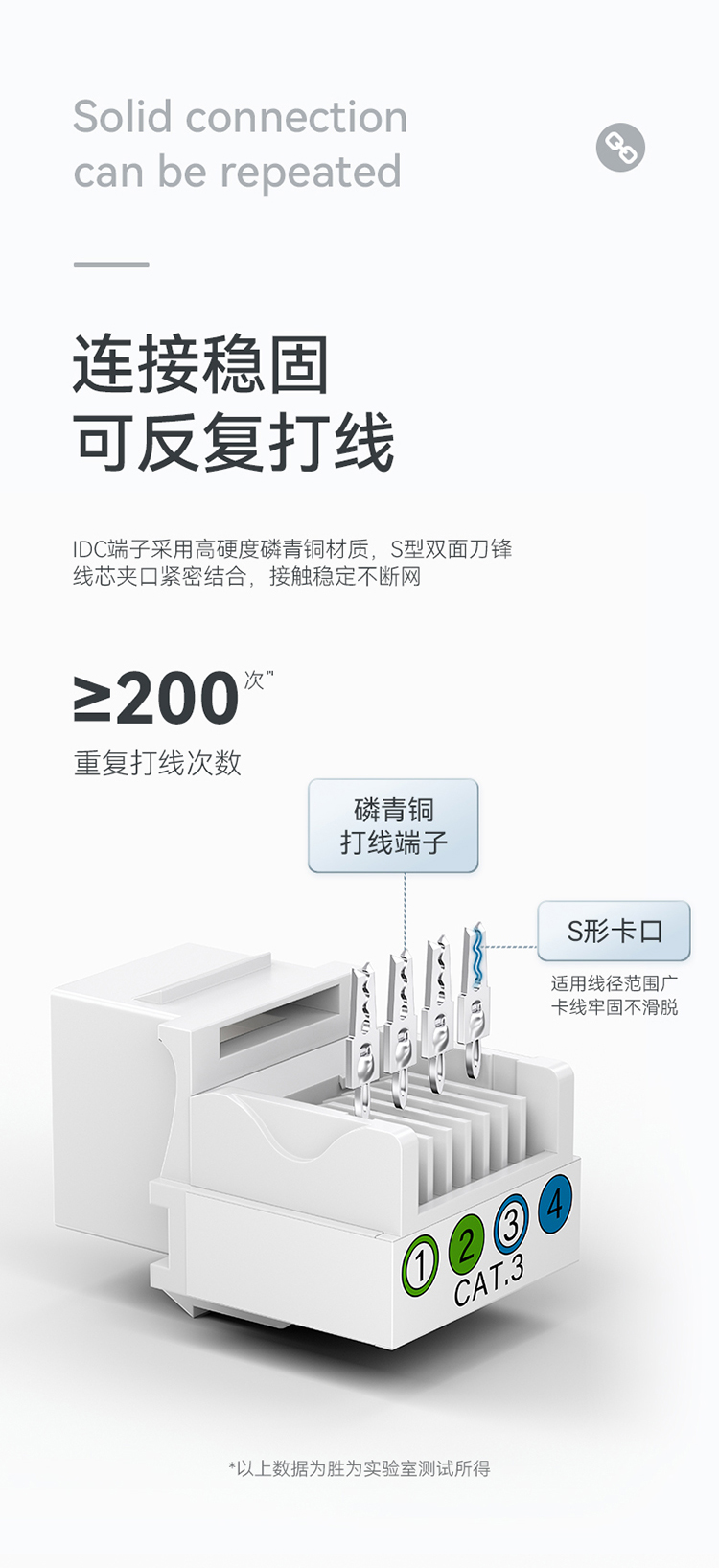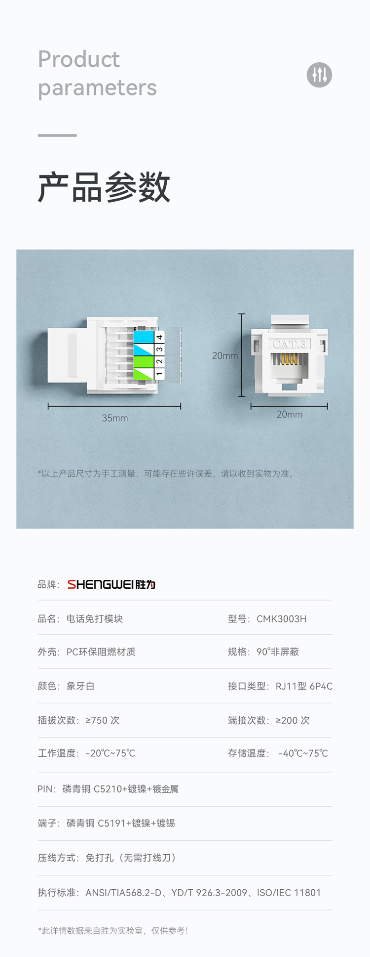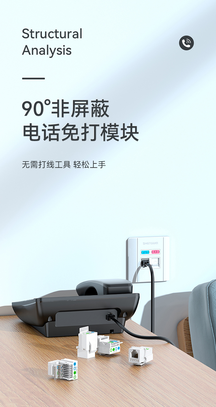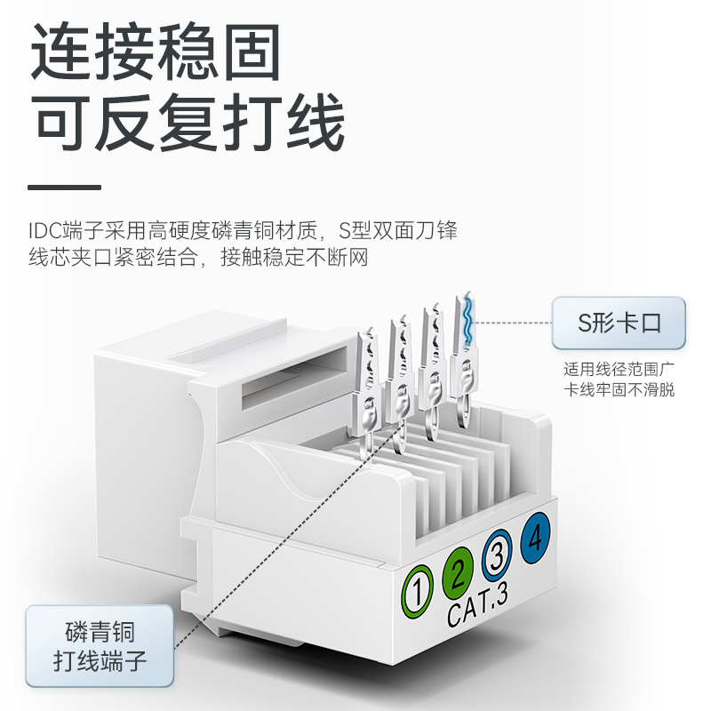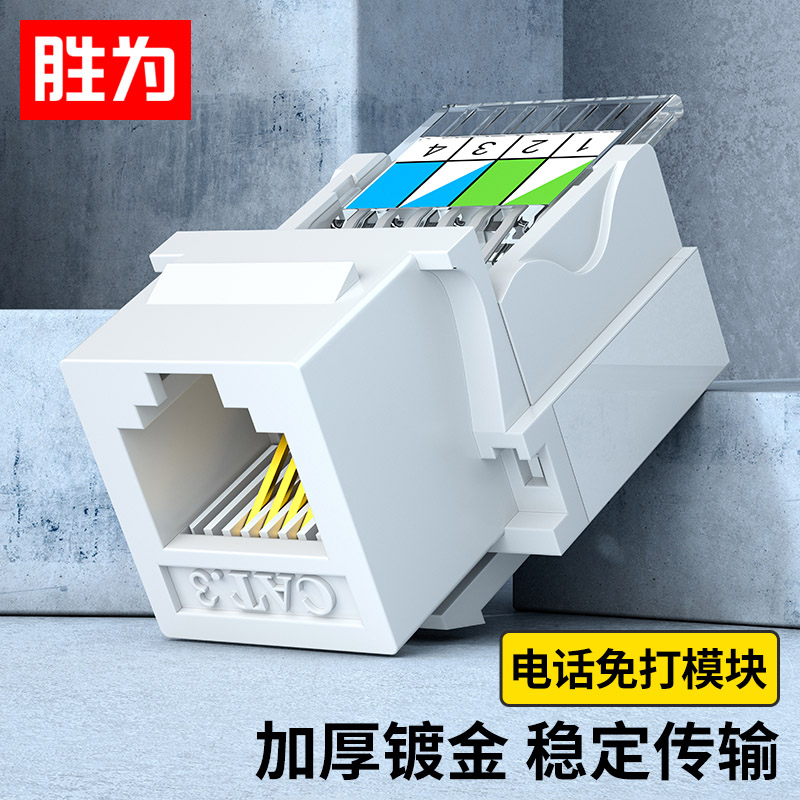 語音電話模塊 CAT3電話線面板模塊 勝為RJ11電話4芯鍍金模塊通信插座 單個裝 CMK3003H