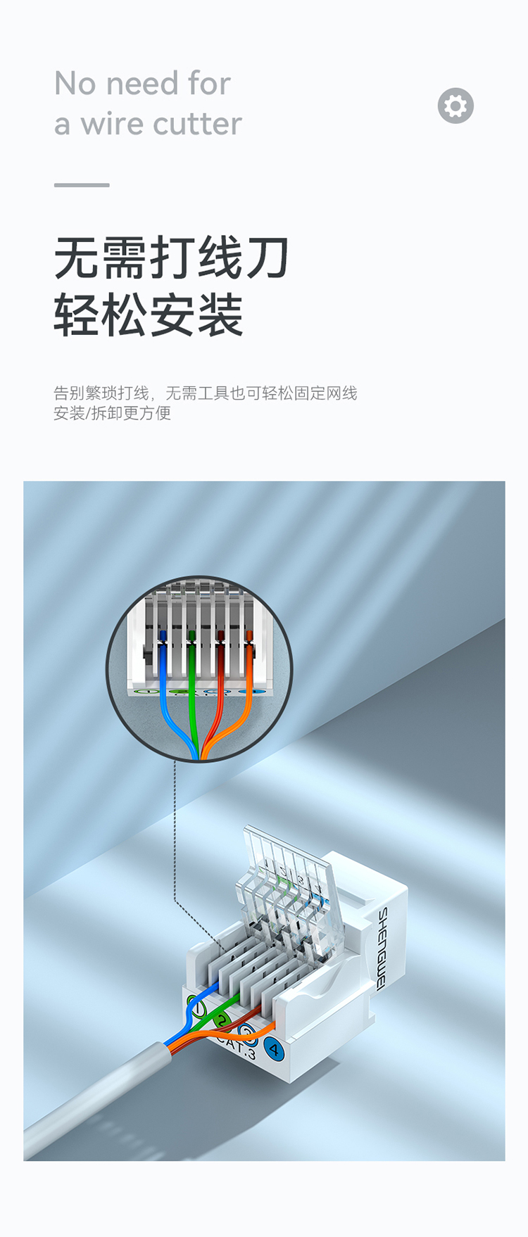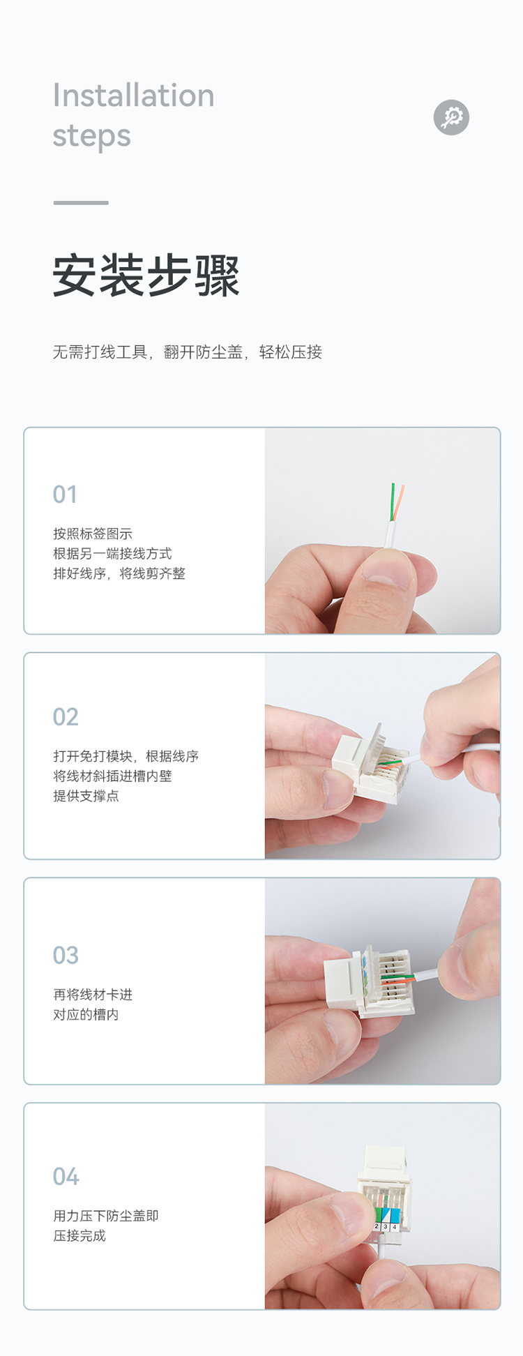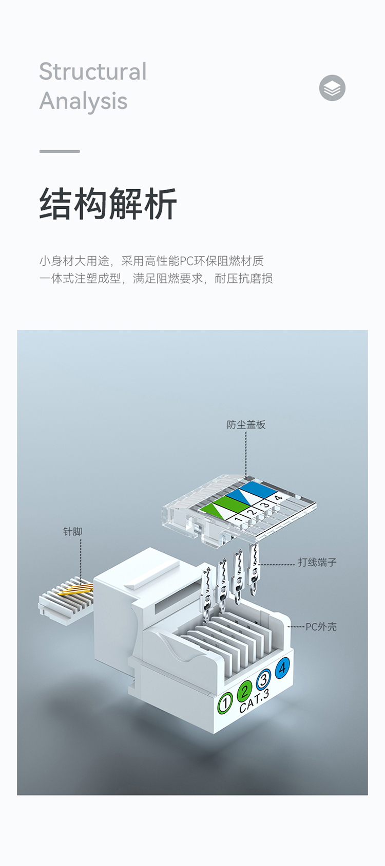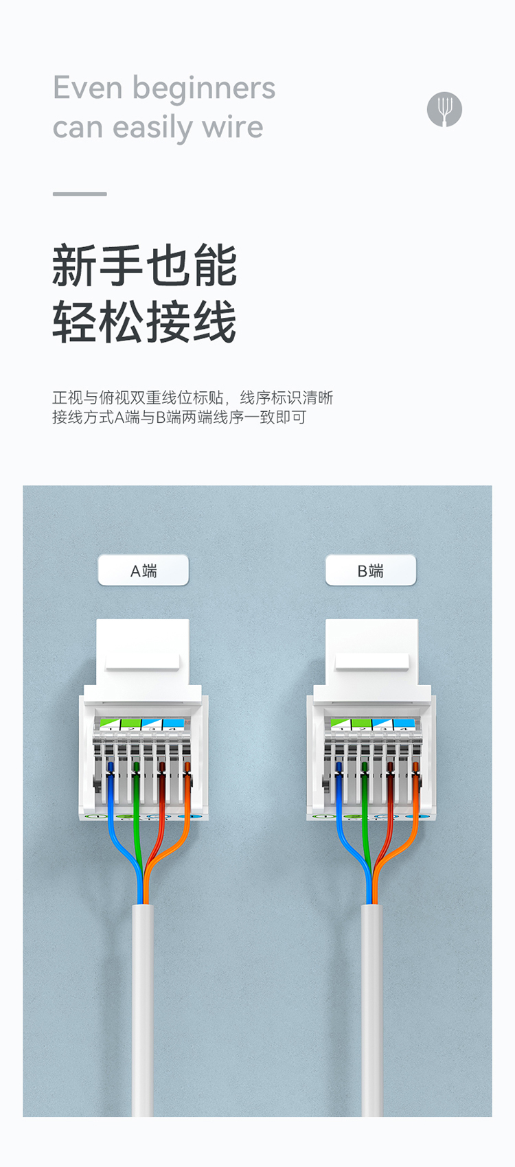 語音電話模塊 CAT3電話線面板模塊 勝為RJ11電話4芯鍍金模塊通信插座 單個裝 CMK3003H