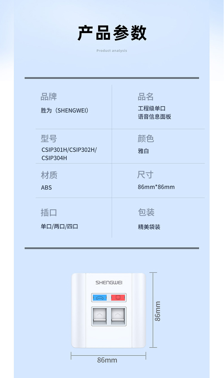 工程級語音信息面板單口 一位網(wǎng)線插座 勝為通用86型網(wǎng)絡(luò)面板電腦網(wǎng)絡(luò)插座信息電話模塊 CSIP301H