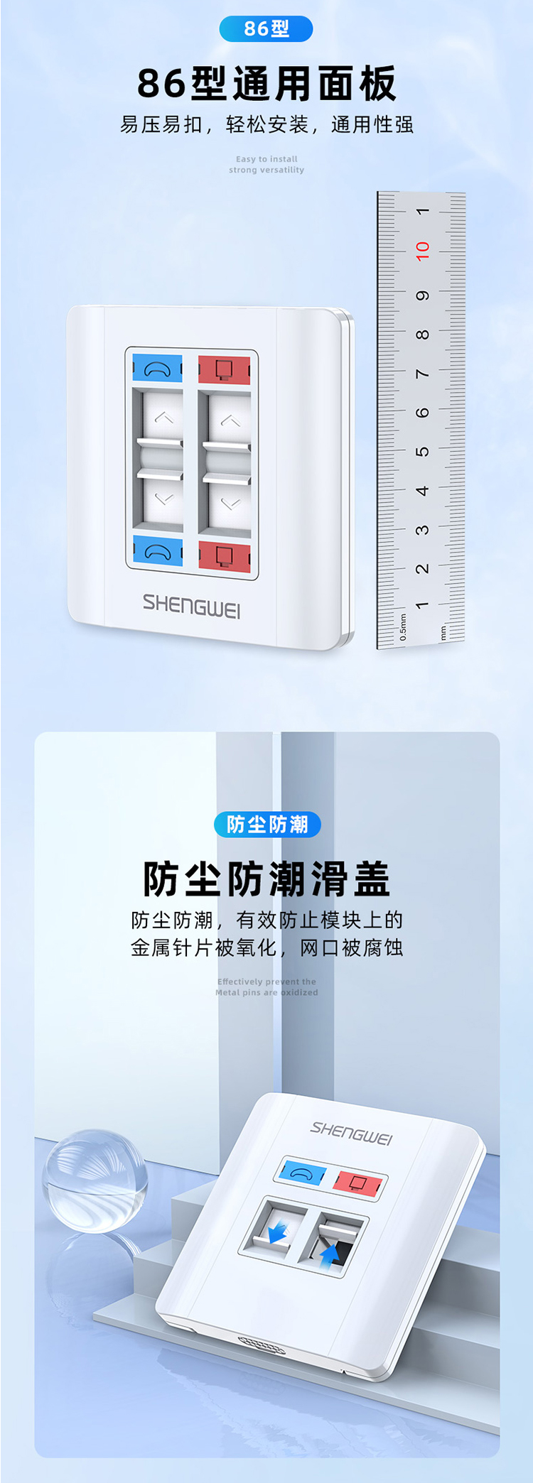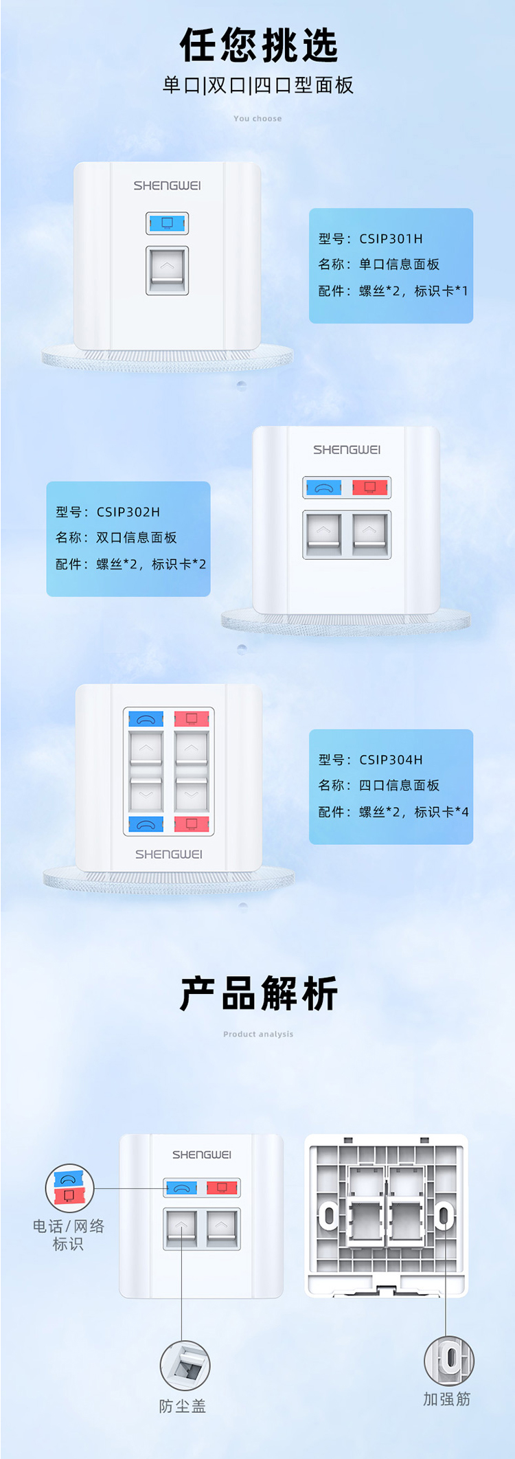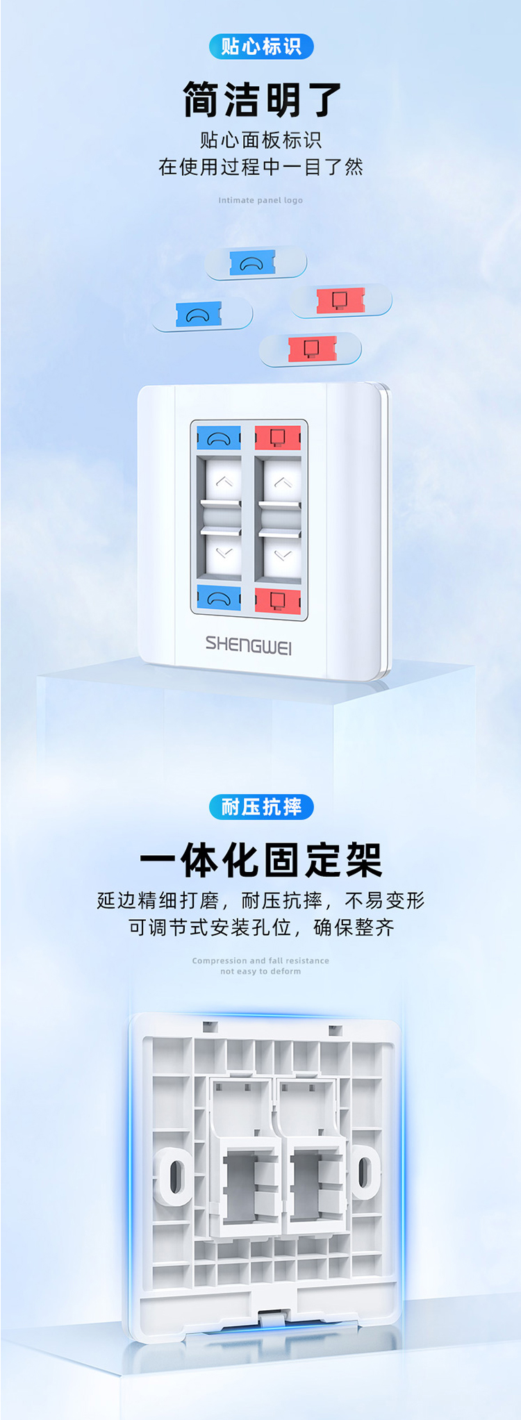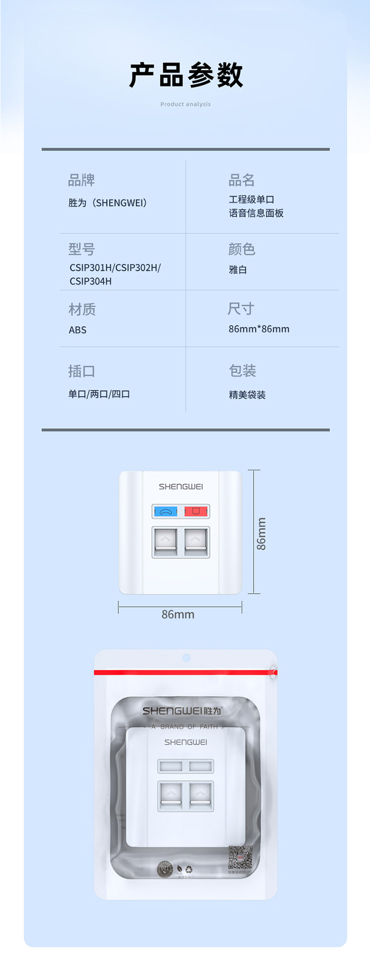 工程級(jí)語音信息面板雙口 二位網(wǎng)線插座 勝為通用86型網(wǎng)絡(luò)面板電腦網(wǎng)絡(luò)插座信息電話模塊 CSIP302H