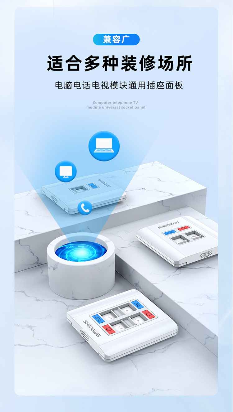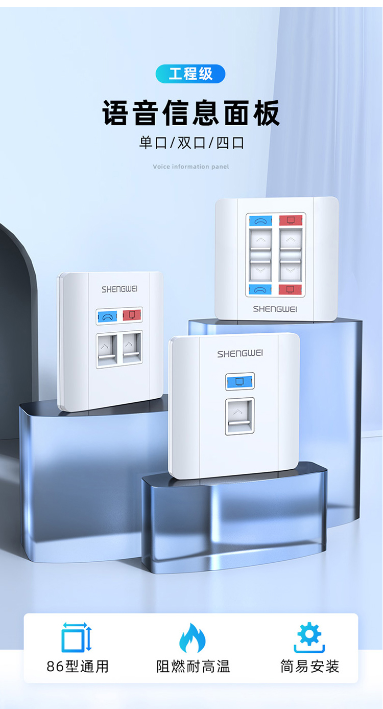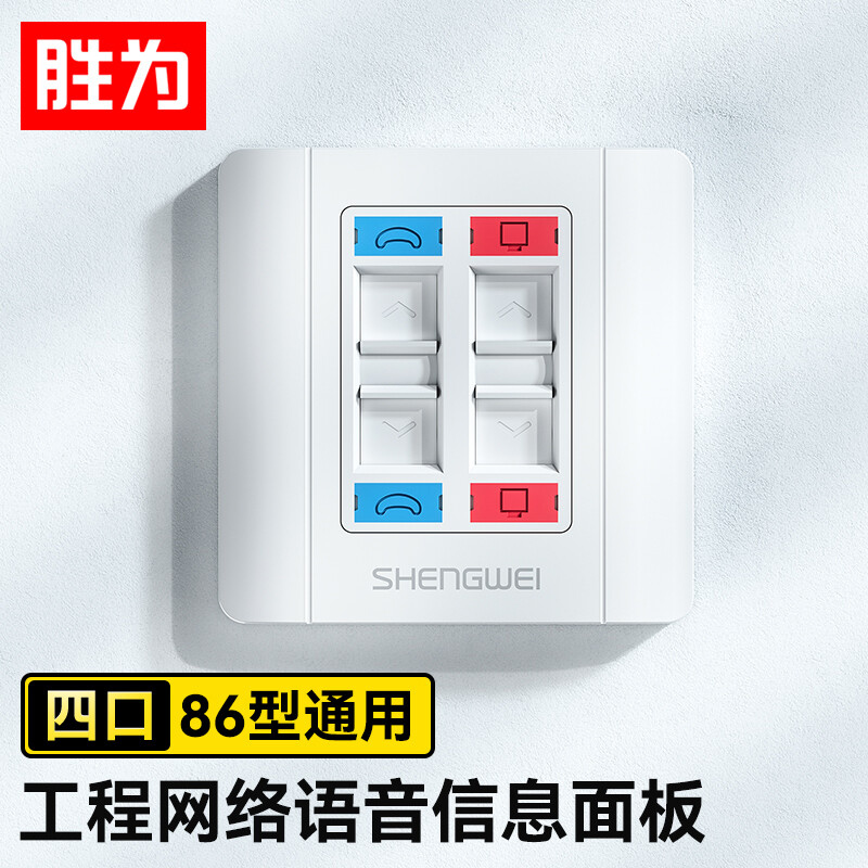 工程級(jí)語音信息面板四口 勝為四位網(wǎng)線插座通用86型網(wǎng)絡(luò)面板電腦網(wǎng)絡(luò)插座信息電話模塊 CSIP304H