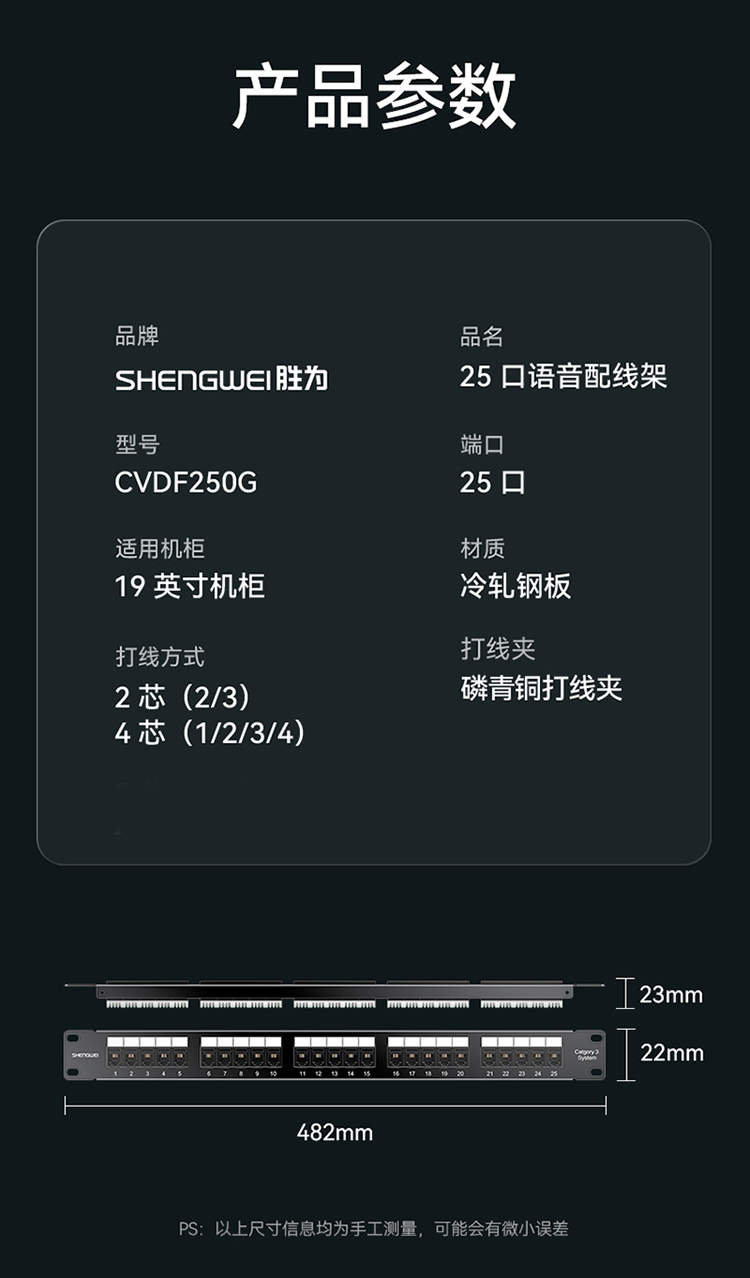 25口語(yǔ)音電話配線架 勝為4芯2芯電話線高端工程級(jí)鍍金1U模塊式CVDF250G