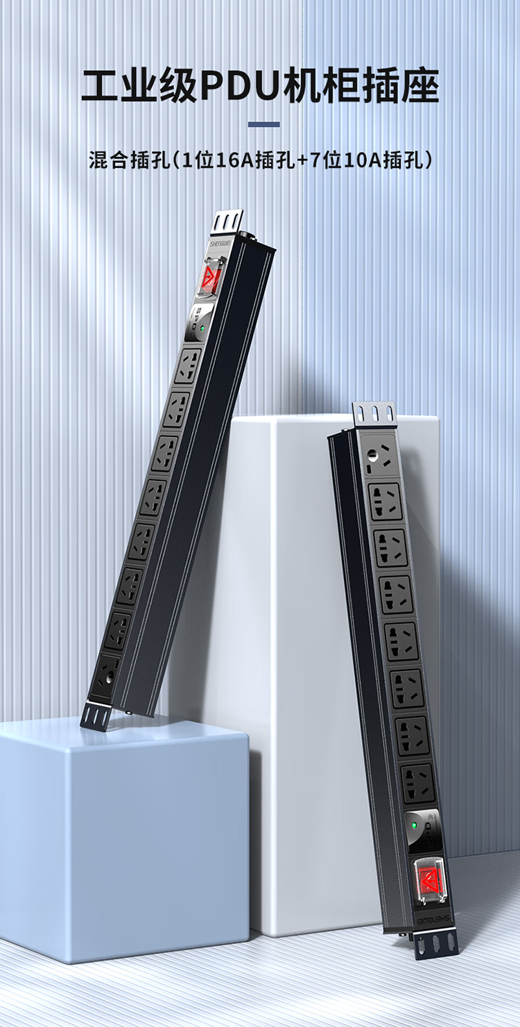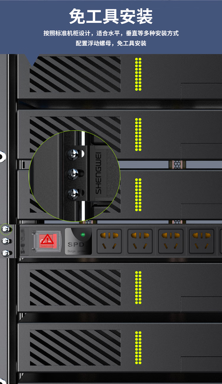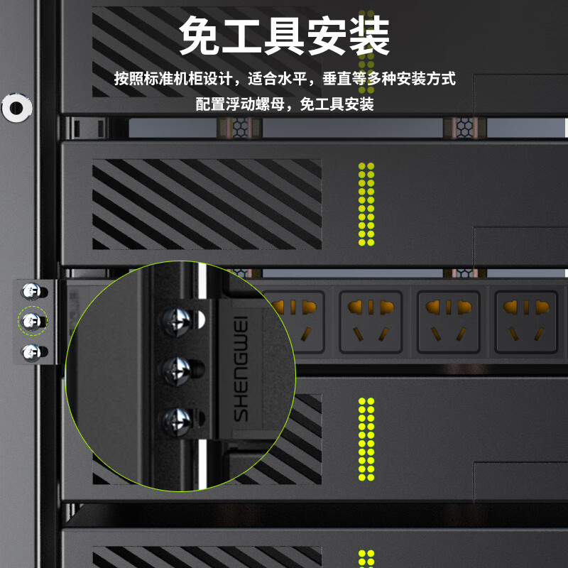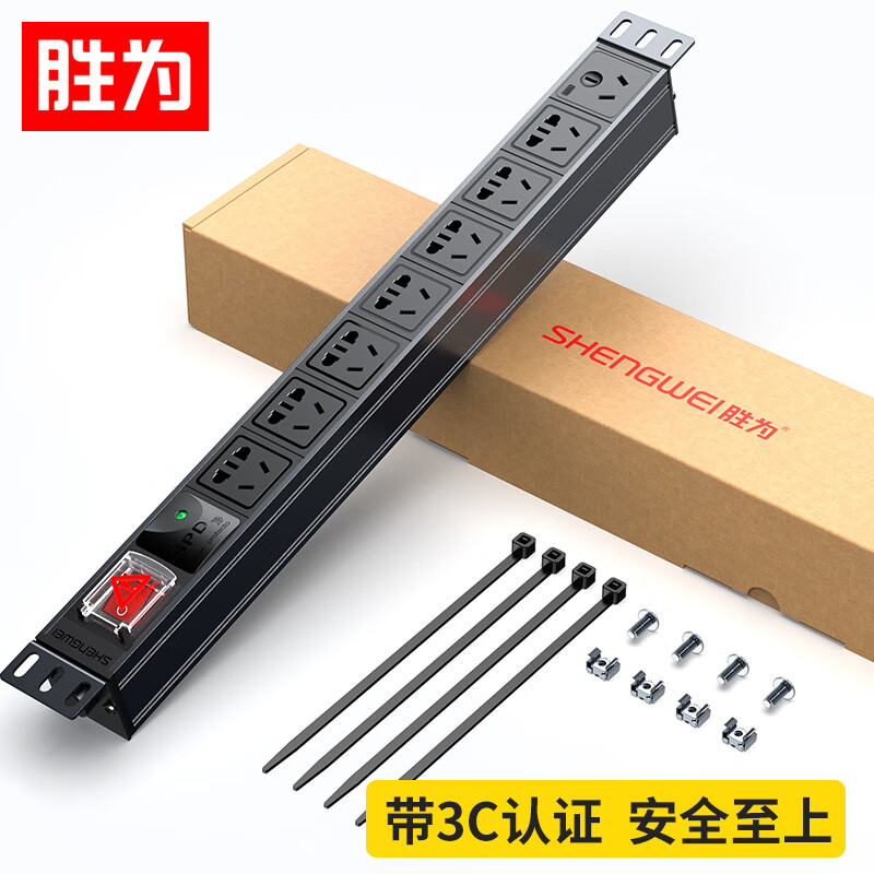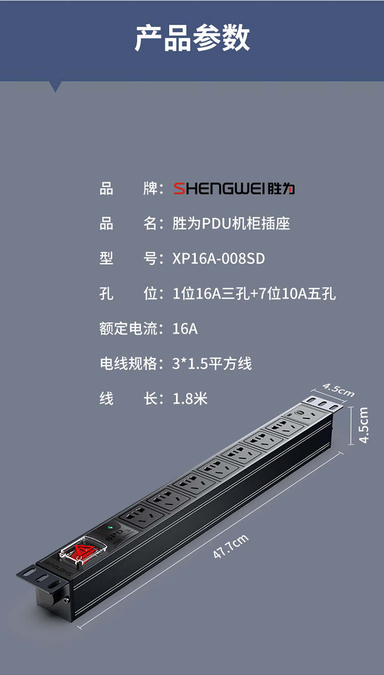 PDU機柜插座 8位16A無線自接線總控防雷 勝為PDU機柜機房專用插座插排接線板 XP16A-008SD