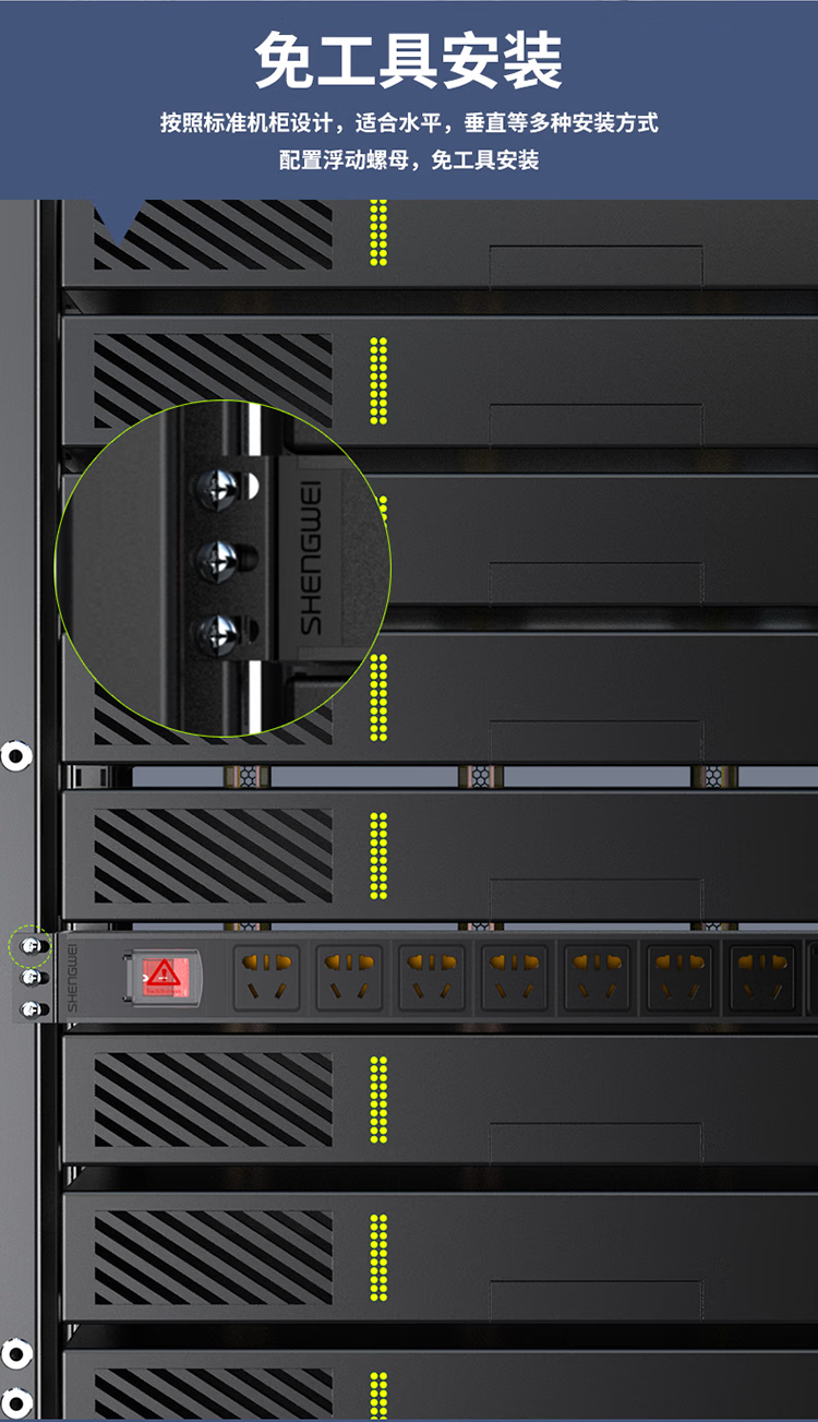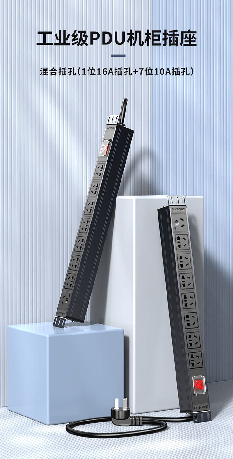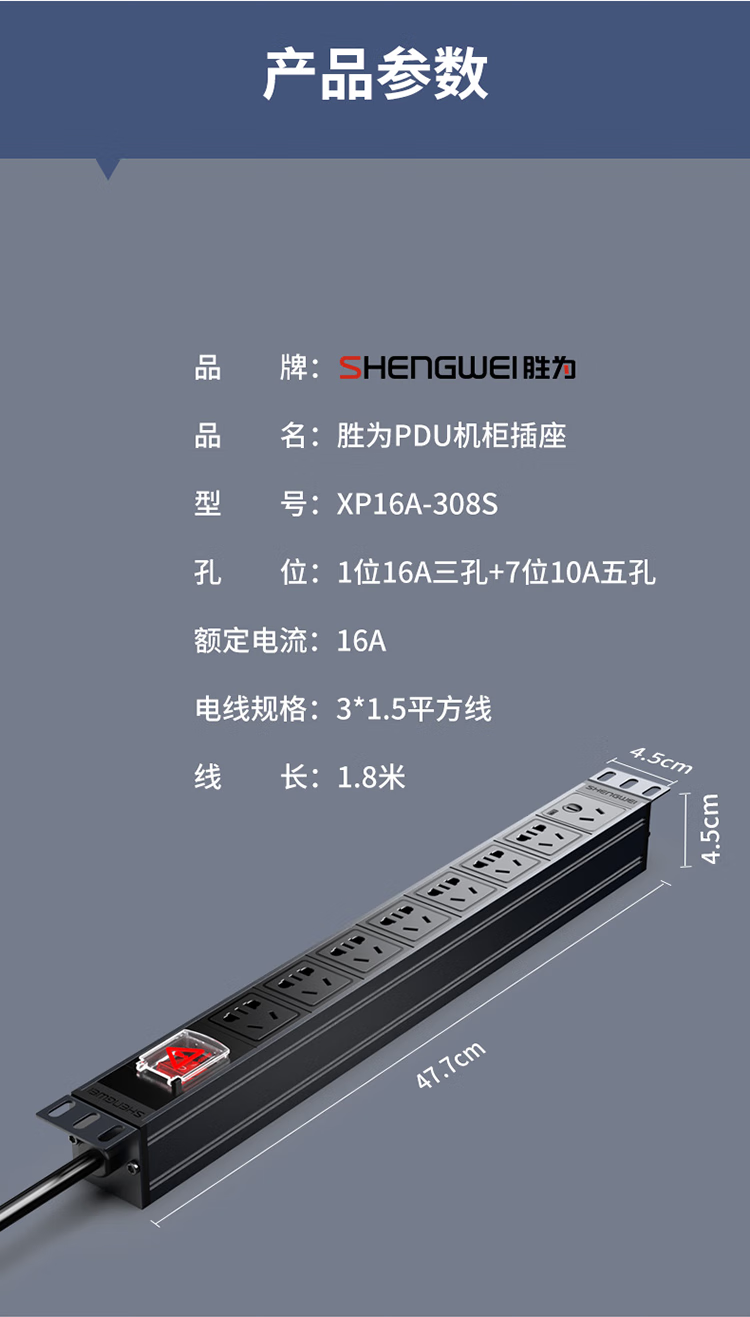 PDU機柜插座 8位16A大功率總控開關(guān)工程機房機柜專用 勝為多功能插座插排接線板 XP16A-308S