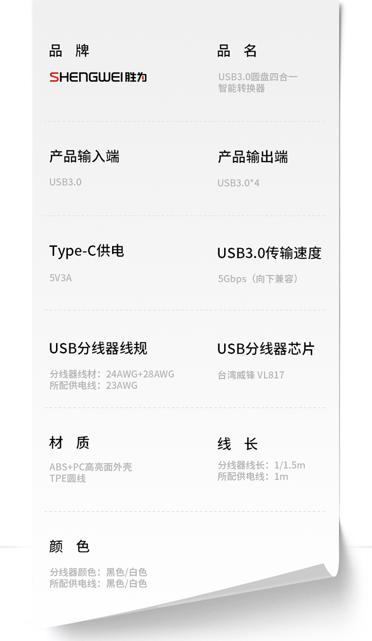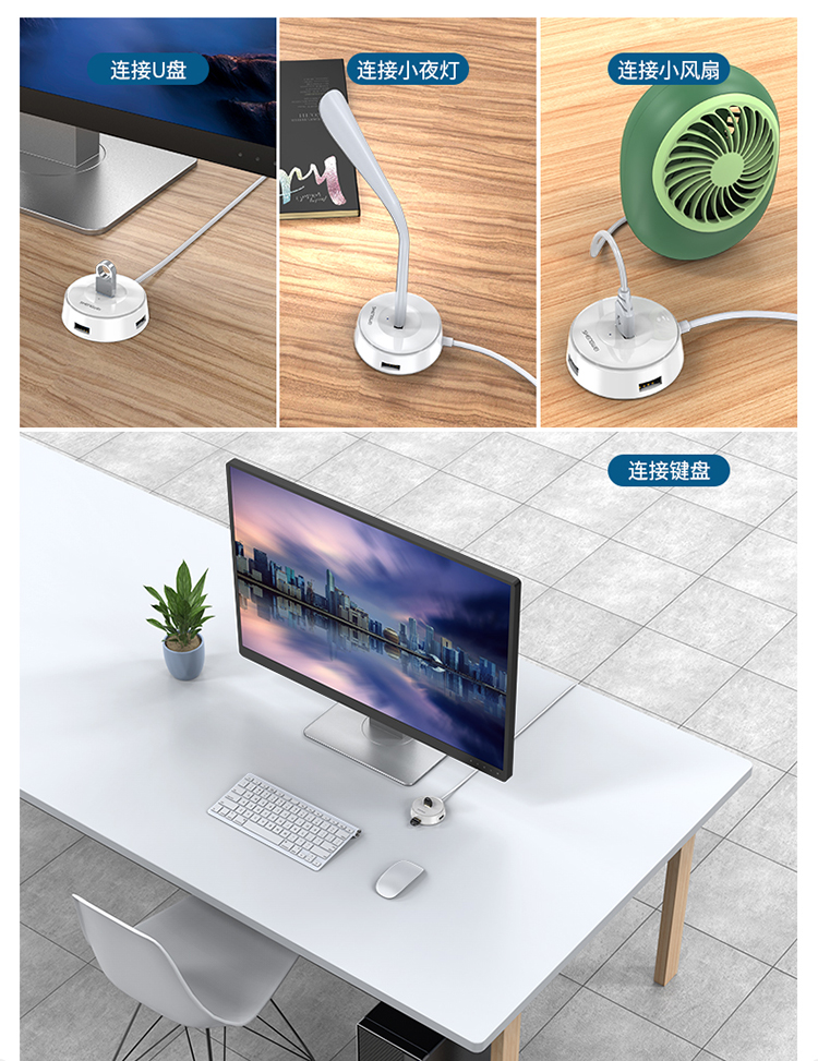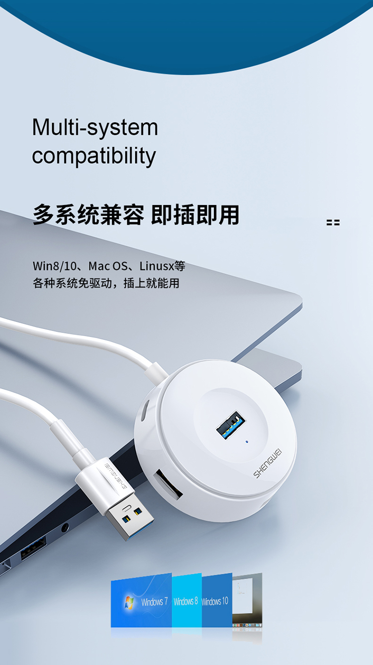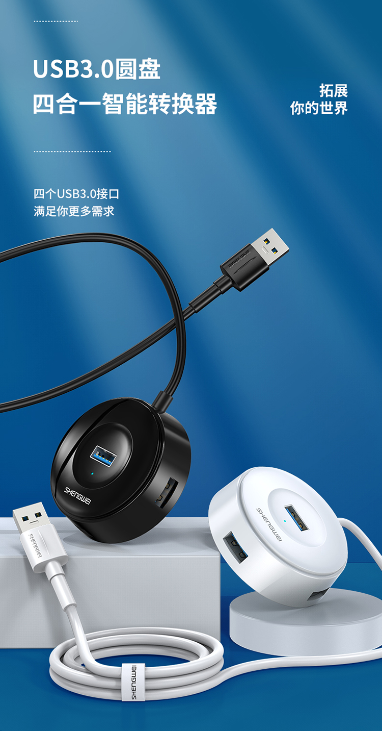 USB分線器 3.0高速4口HUB拓展塢集線器臺(tái)式機(jī) 勝為 四合一延長(zhǎng)線轉(zhuǎn)接器帶電源接口 白色1米 AUU0001J