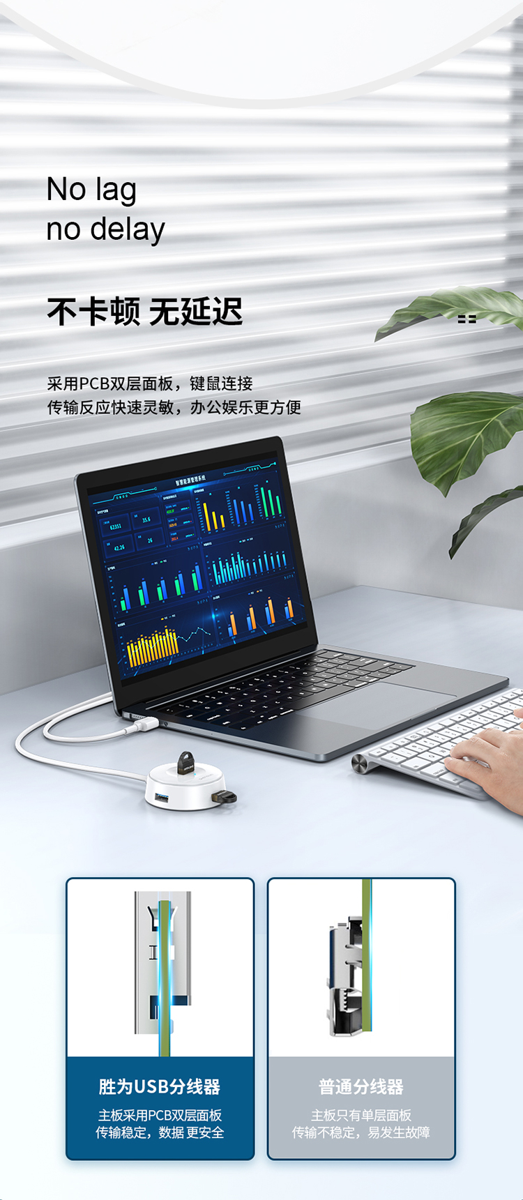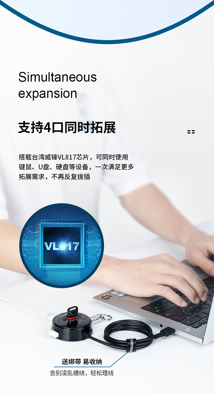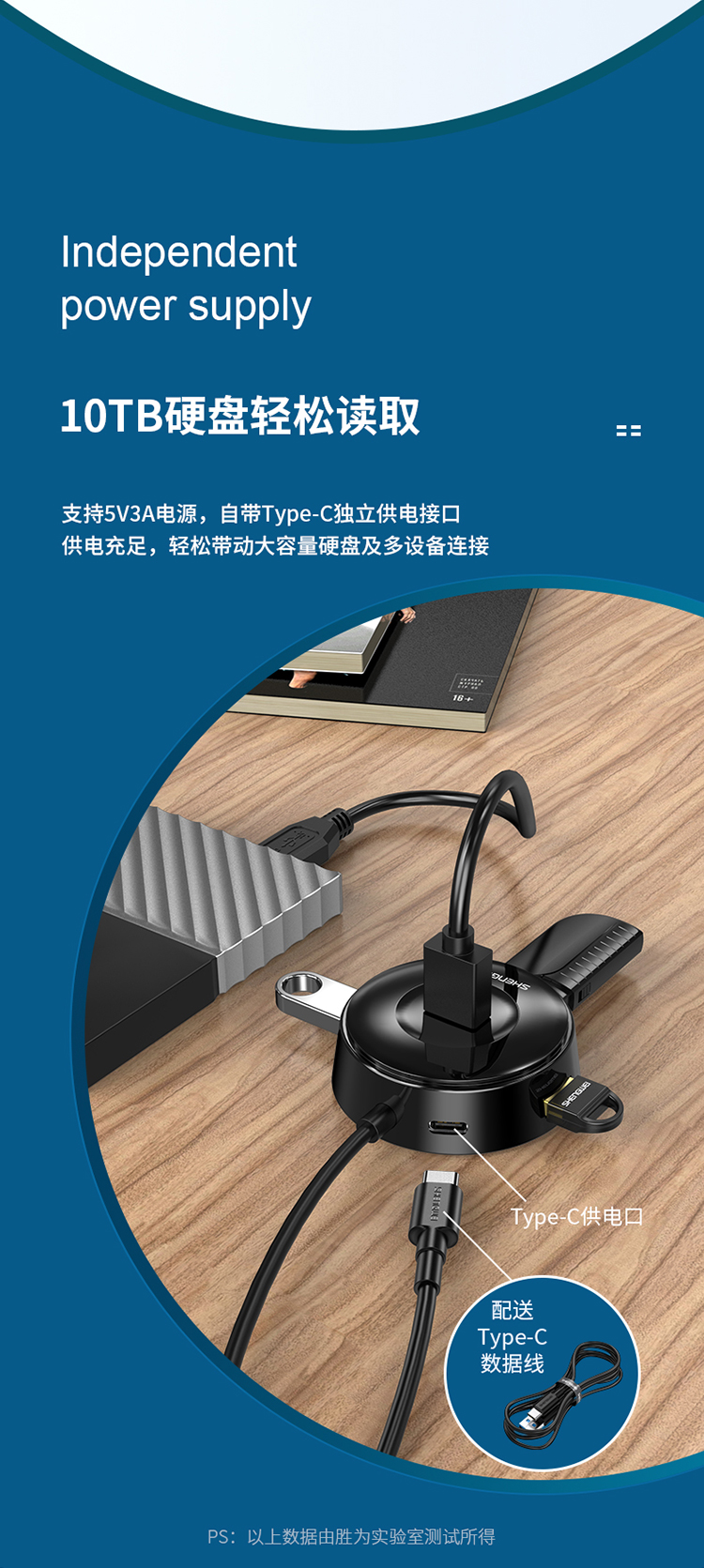 USB分線器 3.0高速4口HUB拓展塢集線器臺(tái)式機(jī) 勝為 四合一延長(zhǎng)線轉(zhuǎn)接器帶電源接口 白色1米 AUU0001J