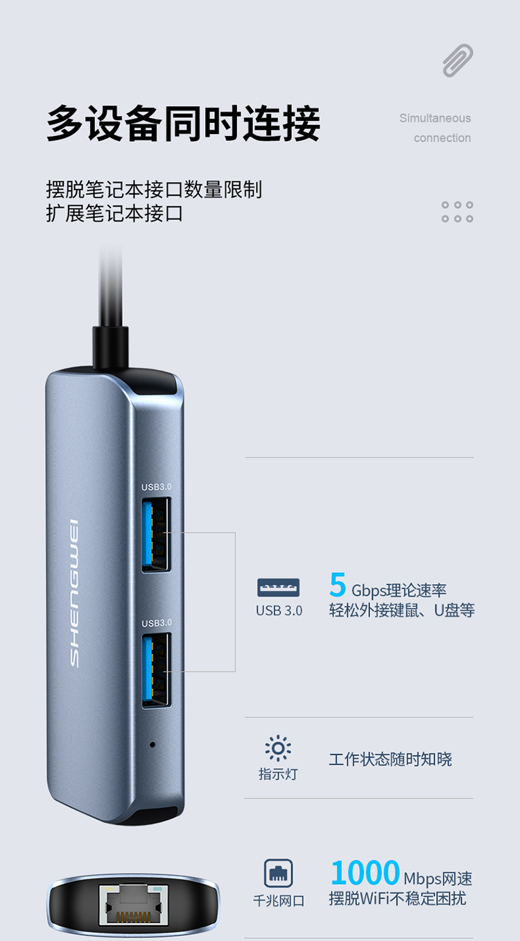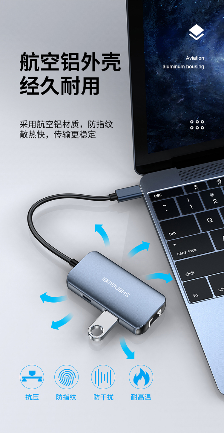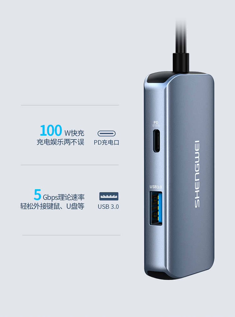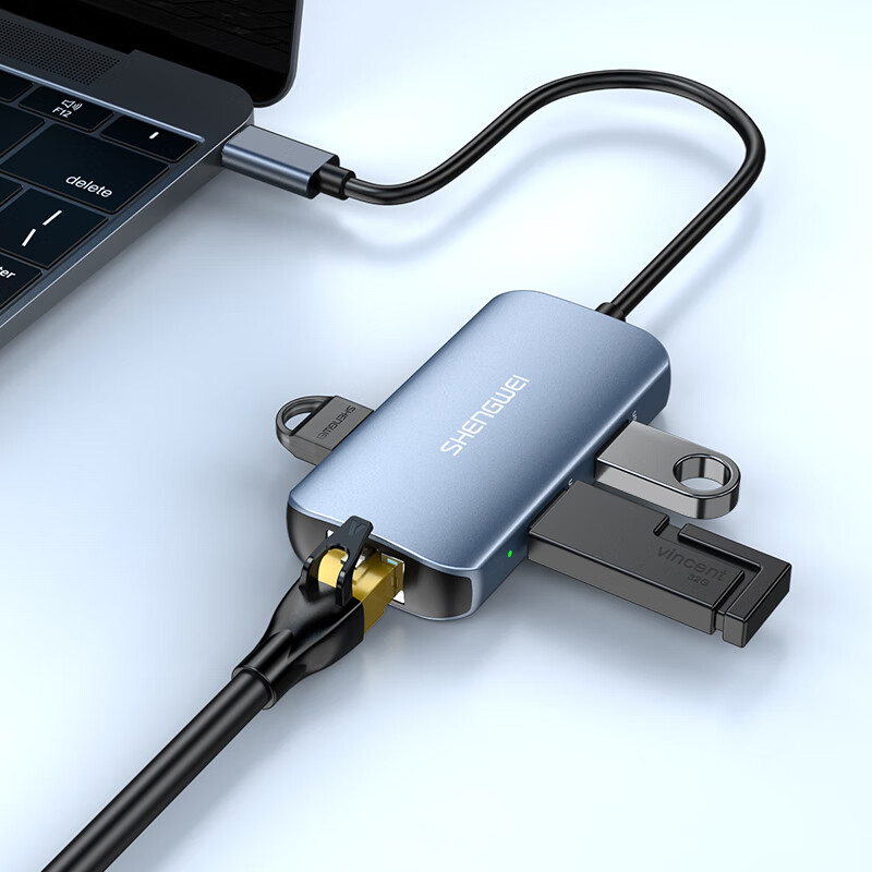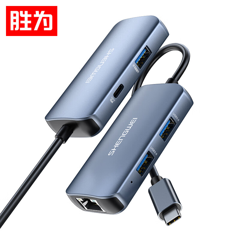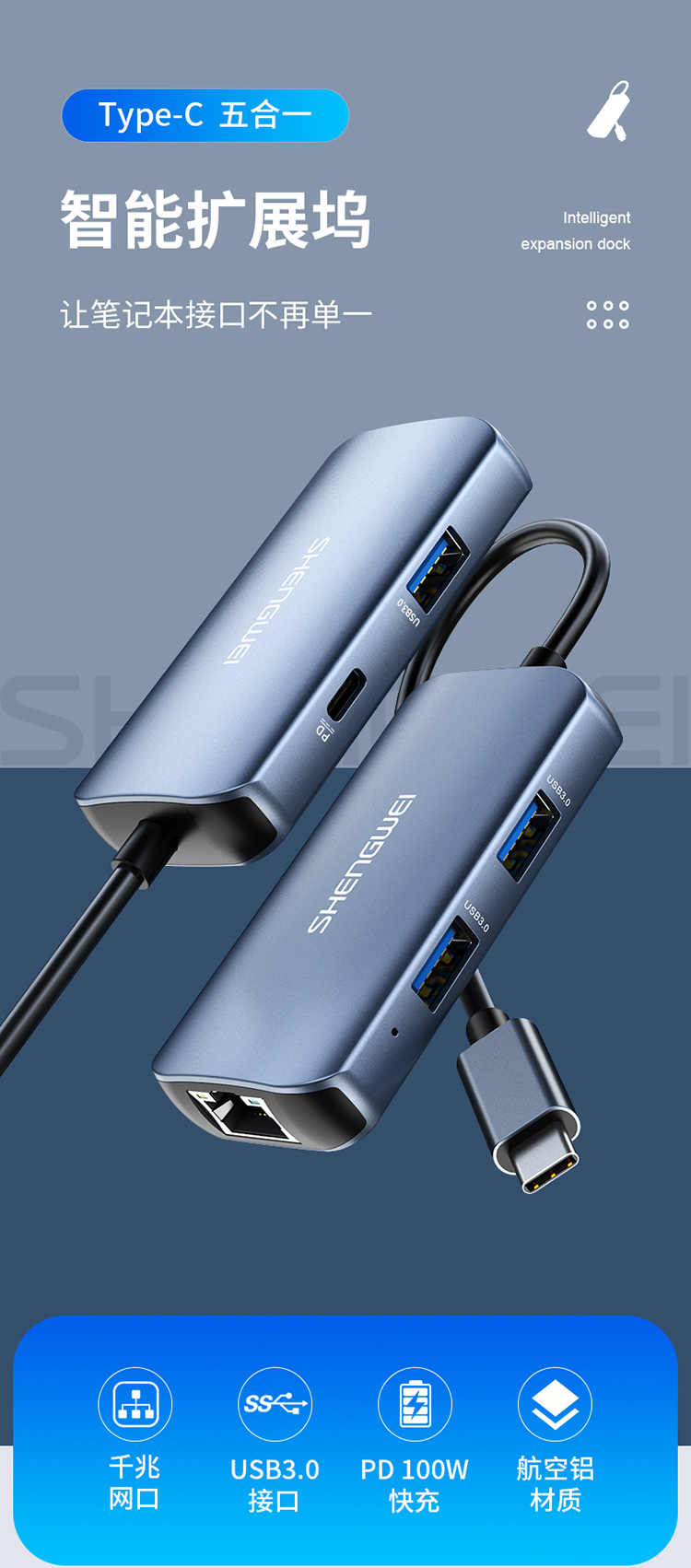 Type-c擴(kuò)展塢五合一 USB-C分線器適用于華為蘋果筆記本電腦擴(kuò)展 勝為RJ45網(wǎng)口轉(zhuǎn)換器 ZHB5011J
