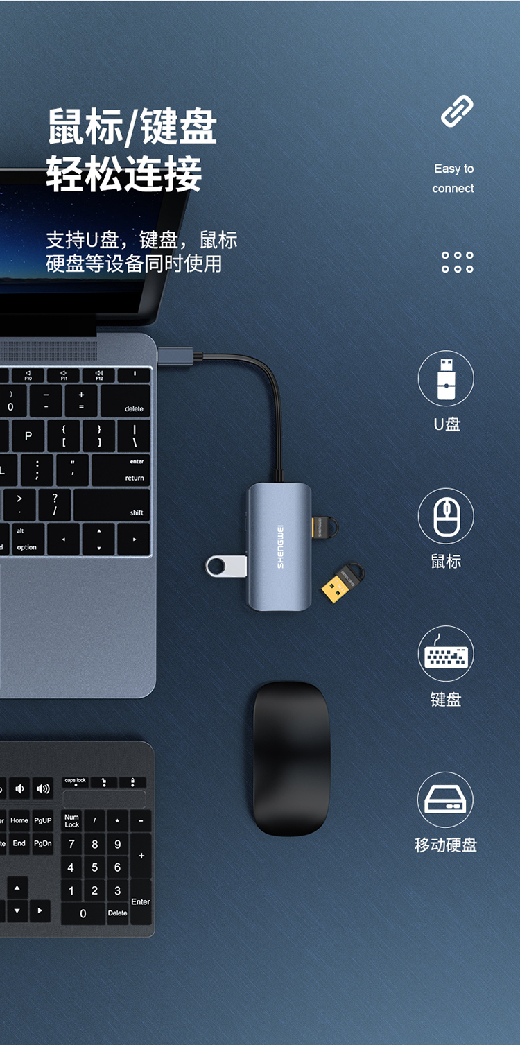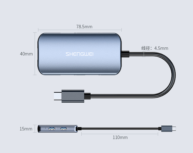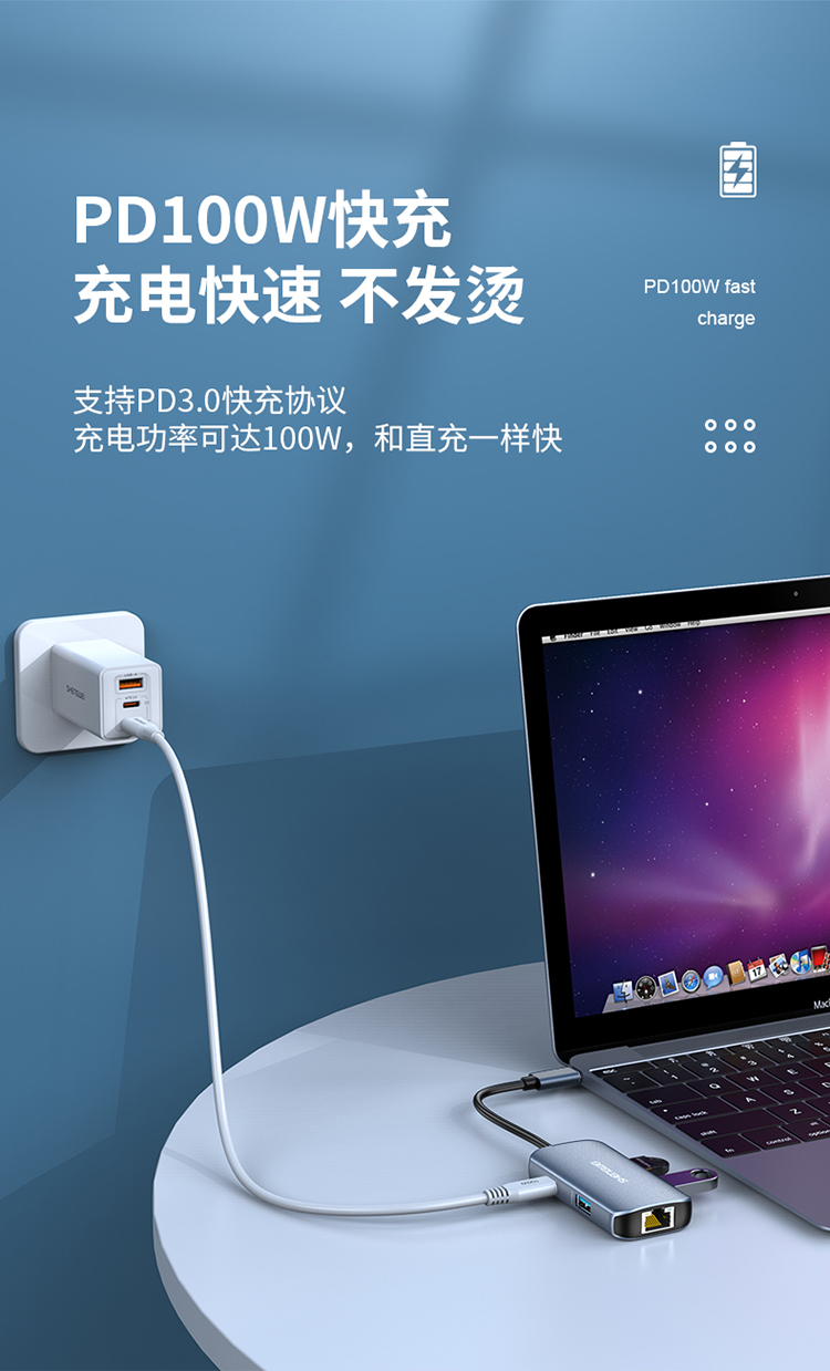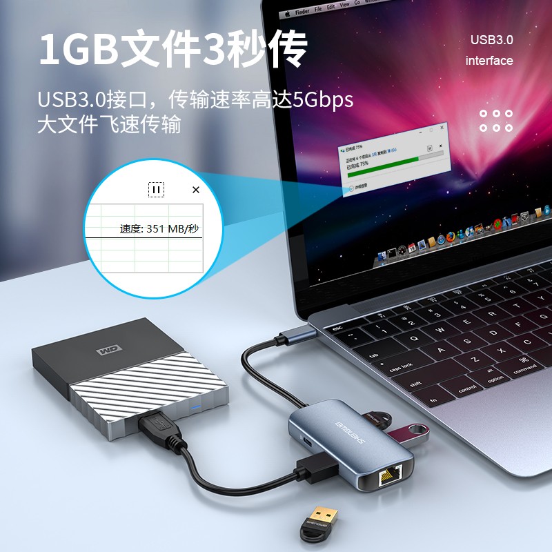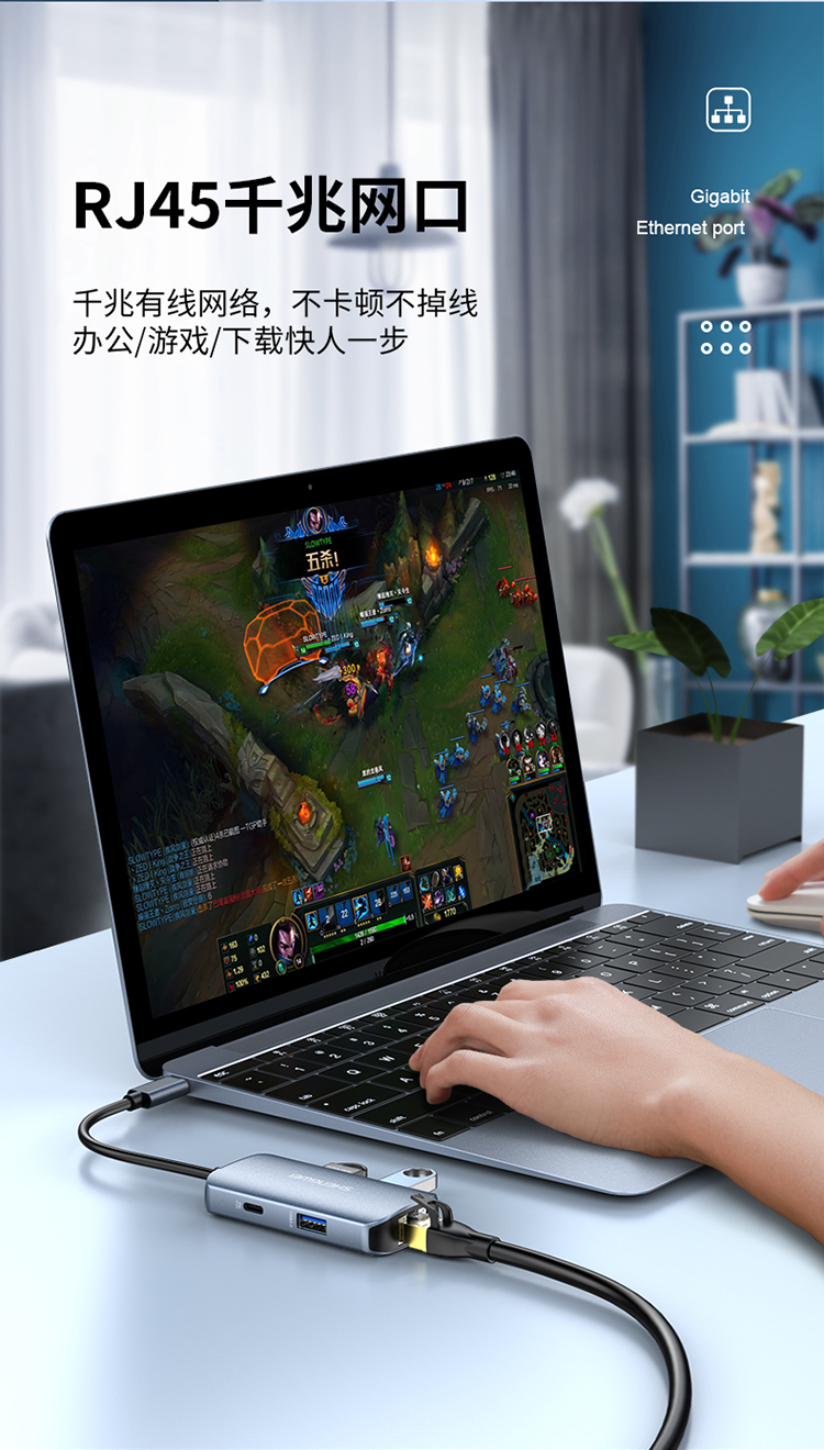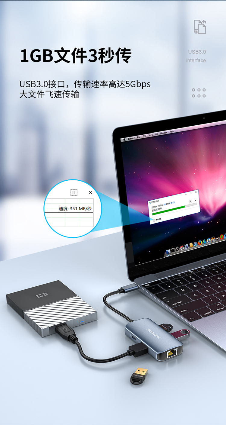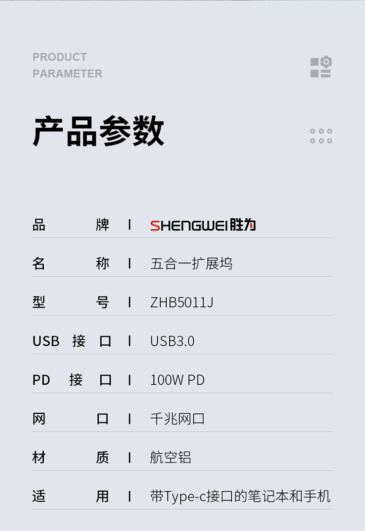 Type-c擴(kuò)展塢五合一 USB-C分線器適用于華為蘋果筆記本電腦擴(kuò)展 勝為RJ45網(wǎng)口轉(zhuǎn)換器 ZHB5011J
