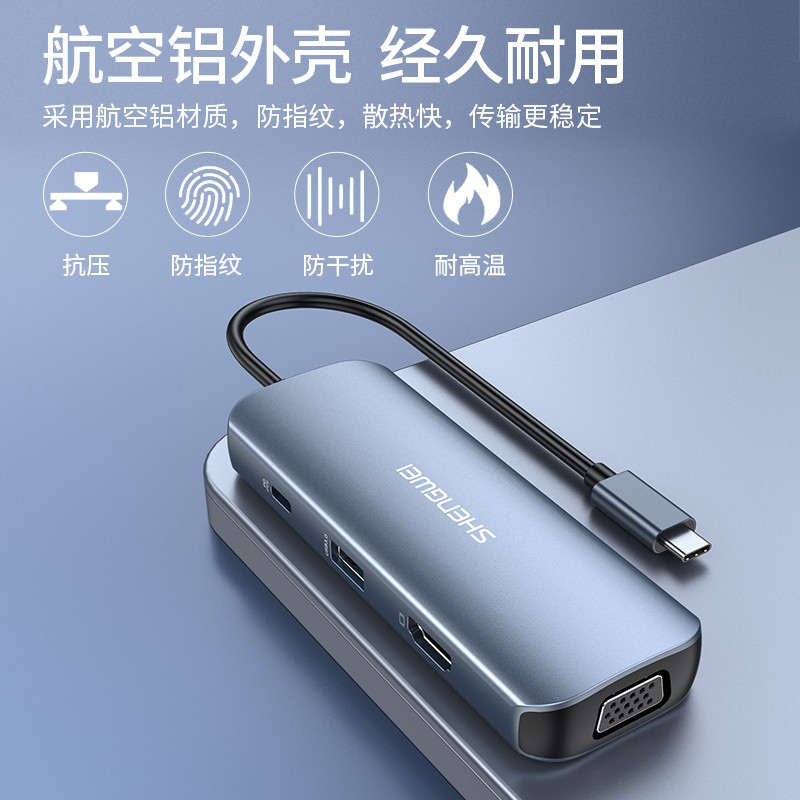 七合一擴(kuò)展塢 USB-C轉(zhuǎn)HDMI/VGA轉(zhuǎn)接頭投屏蘋(píng)果華為Macbook電腦轉(zhuǎn)換器千兆網(wǎng)口 勝為 ZHB7012J