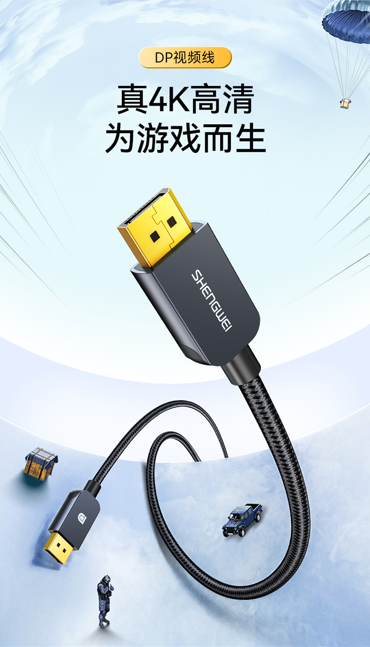 DP線1.2版4K高清視頻連接線 高清DisplayPort公對(duì)公 臺(tái)式機(jī)電腦顯卡筆記本連接顯示器視頻線1米 勝為 ADP0010J