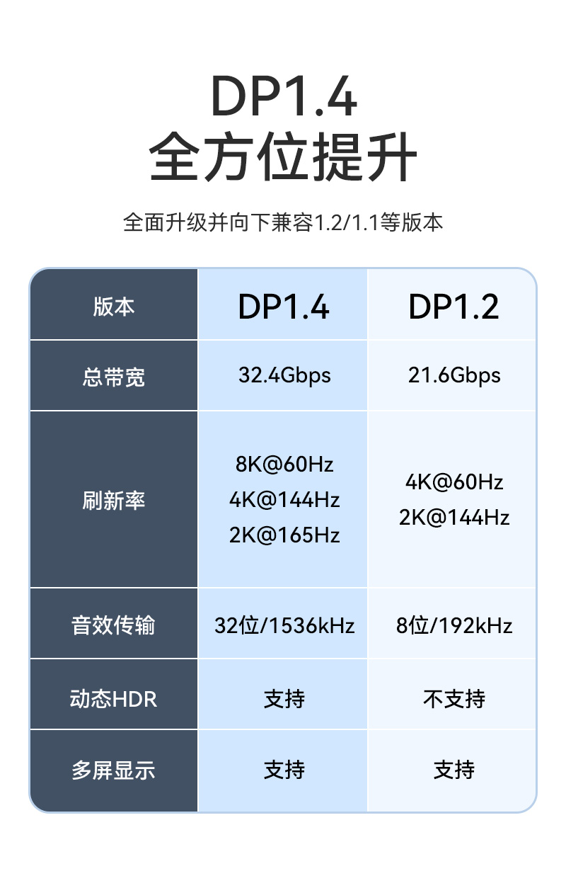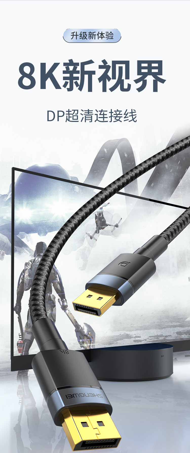 DP線1.4版8K高清線4K144Hz 勝為公對公DisplayPort線電腦游戲電競顯示器視頻線1米 ADP0110J
