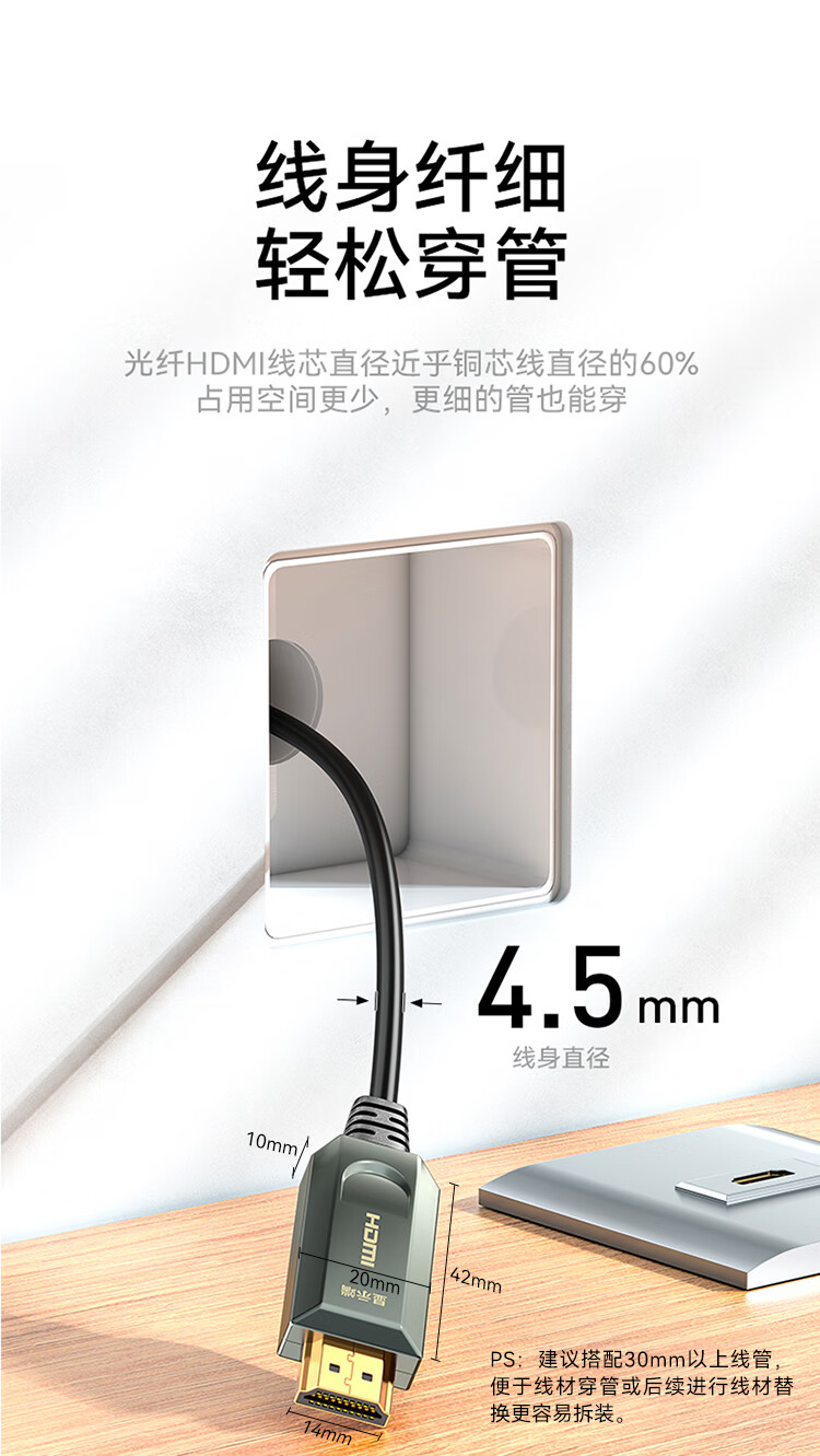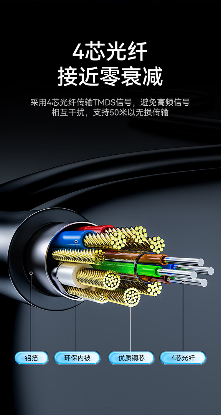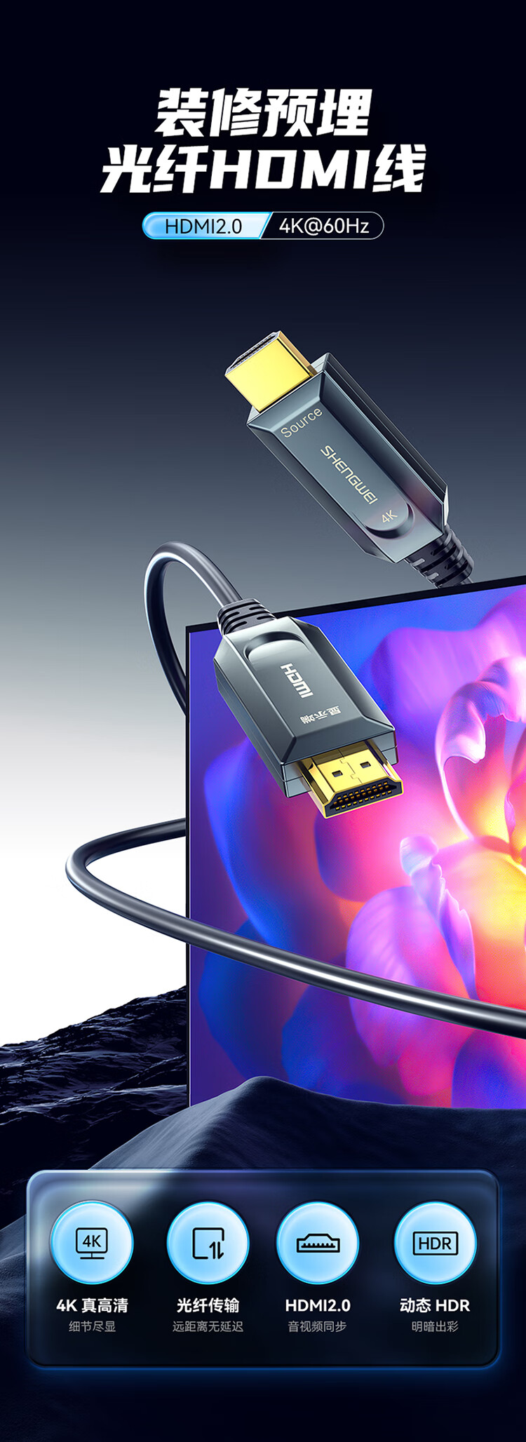 光纖HDMI線2.0版 4K60Hz發(fā)燒級高清線 勝為電腦電視投影儀顯示器3D視頻線工程裝修連接線10米 AHH1100J