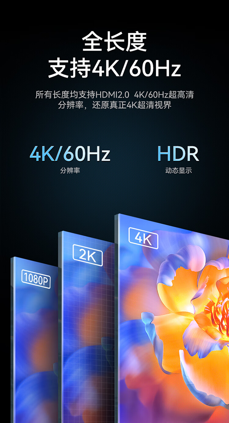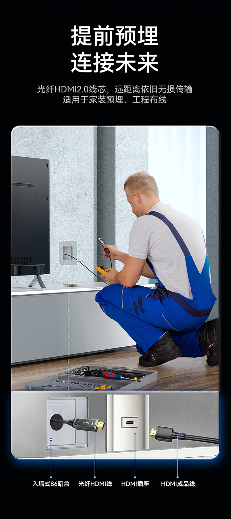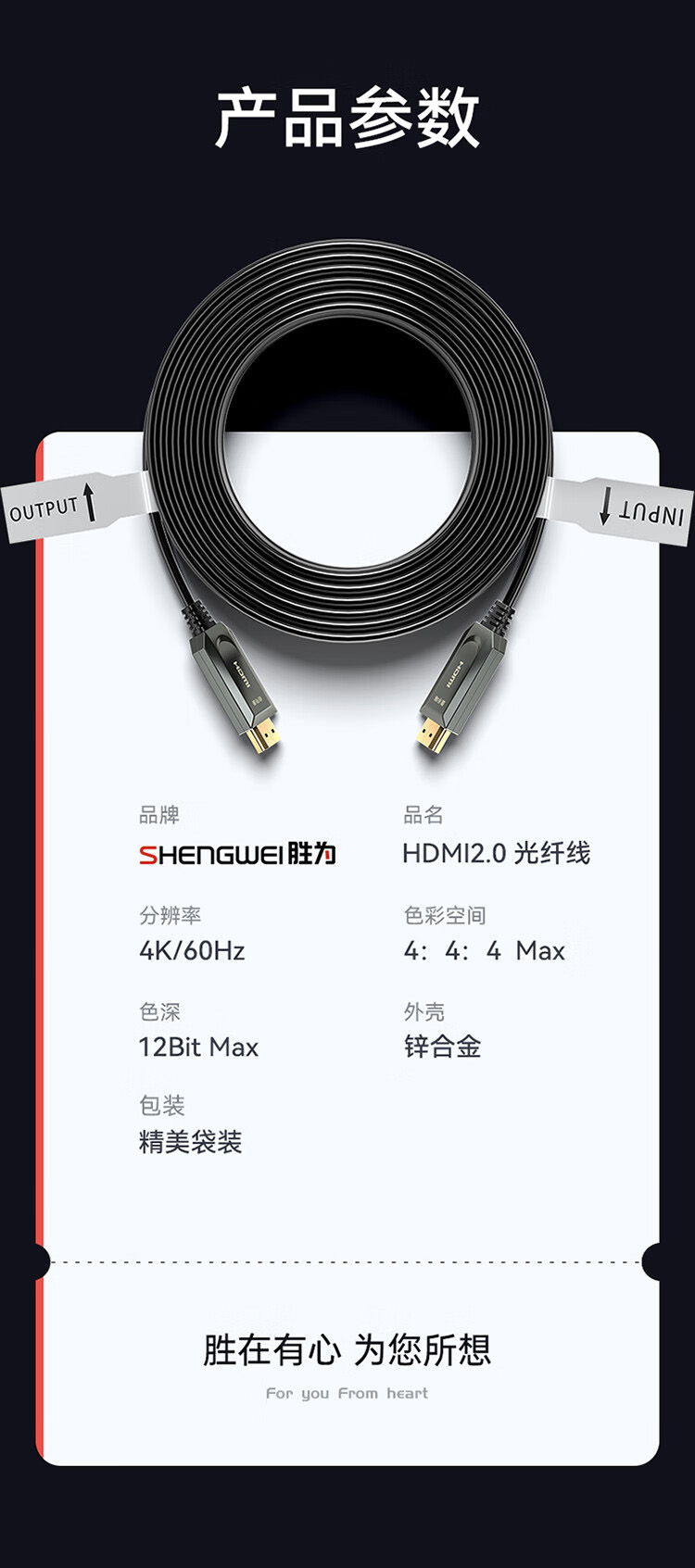 光纖HDMI線2.0版 4K60Hz發(fā)燒級高清線 勝為電腦電視投影儀顯示器3D視頻線工程裝修連接線10米 AHH1100J