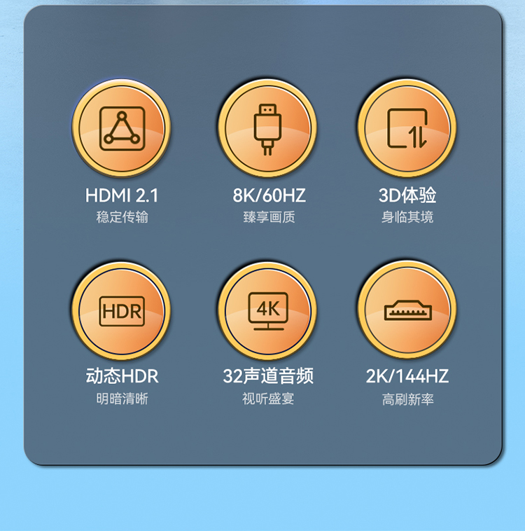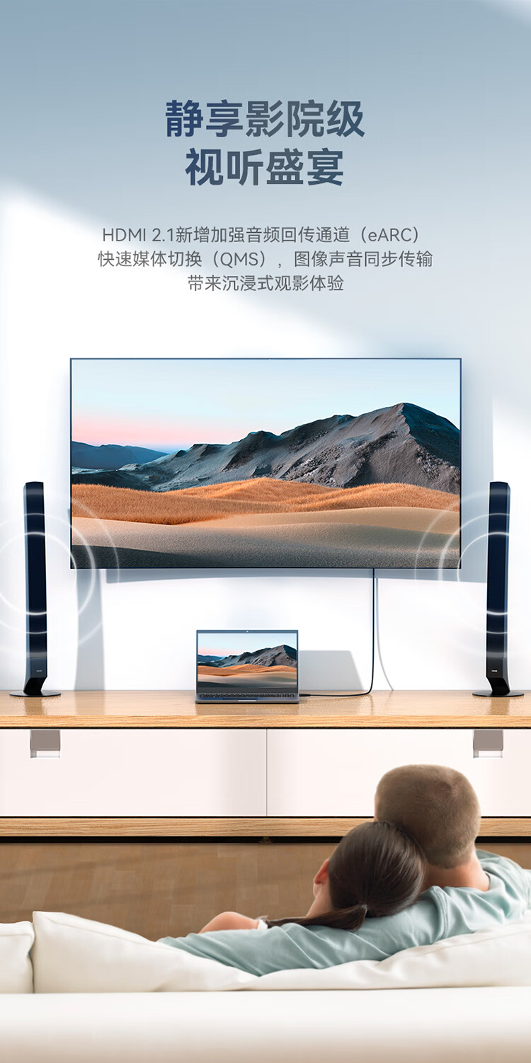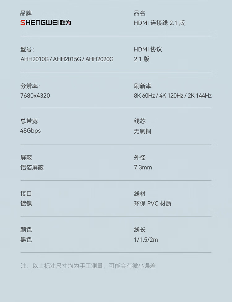 HDMI線2.1版8K高清線4K144HZ/120/HZ 勝為 筆記本電腦機頂盒接電視顯示器投影儀視頻連接線 1米 AHH2010G