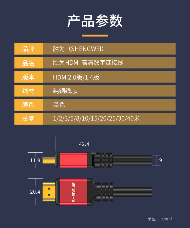 HDMI線2.0版工程級(jí)4K數(shù)字高清線 勝為 3D視頻線筆記本電腦機(jī)頂盒電視投影儀連接線1米 WHC4010G