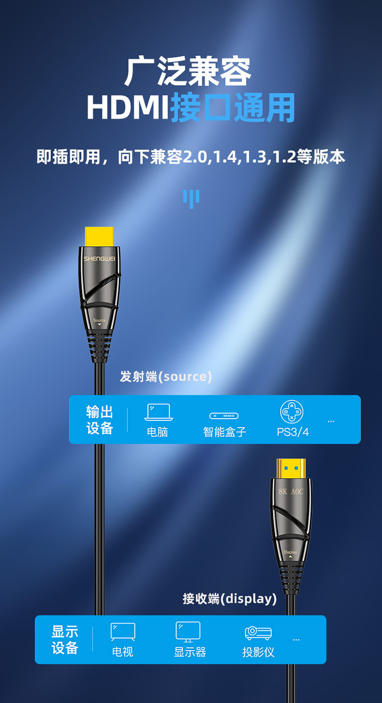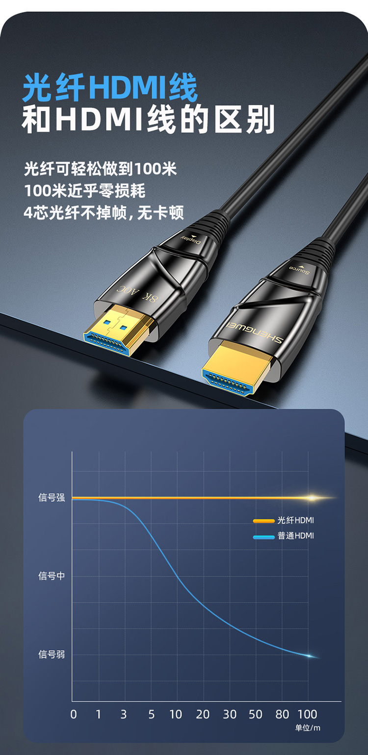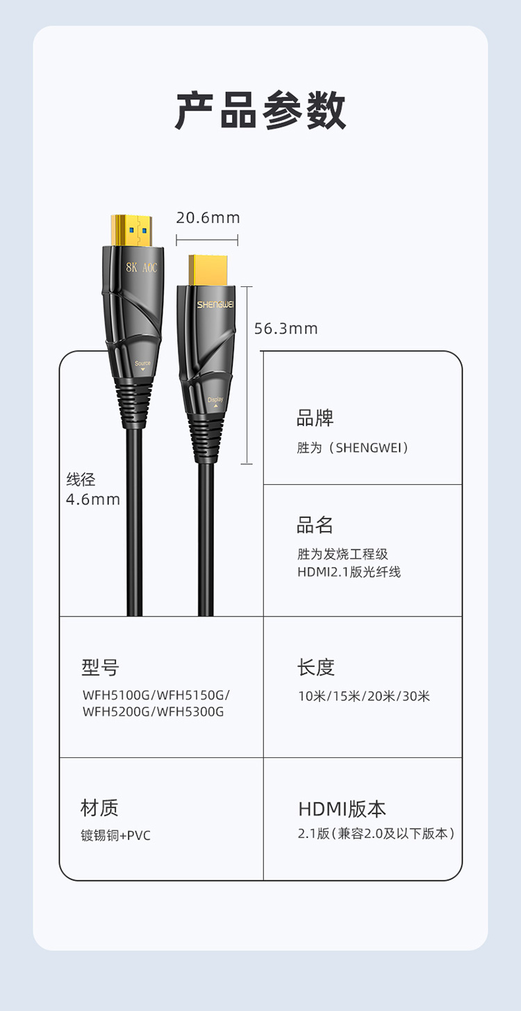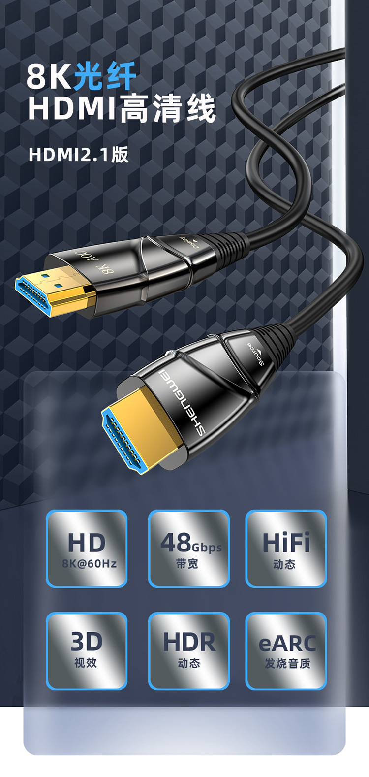光纖HDMI線2.1版8K@60HZ高清線 勝為發(fā)燒工程級 電腦電視投影儀影院3D視頻連接線 10米WFH5100G