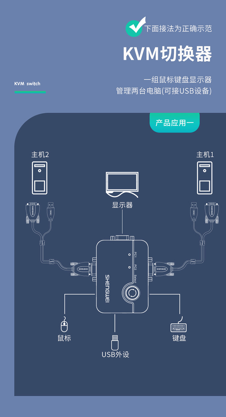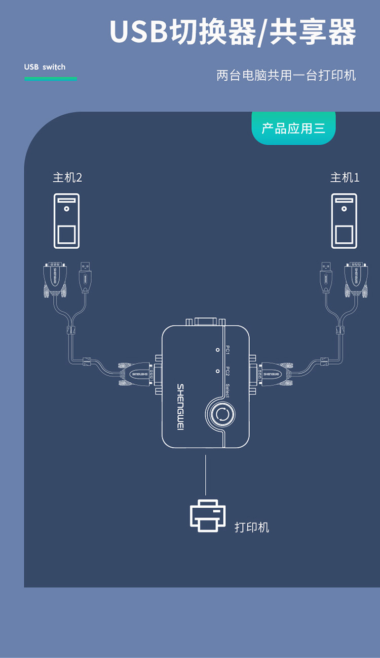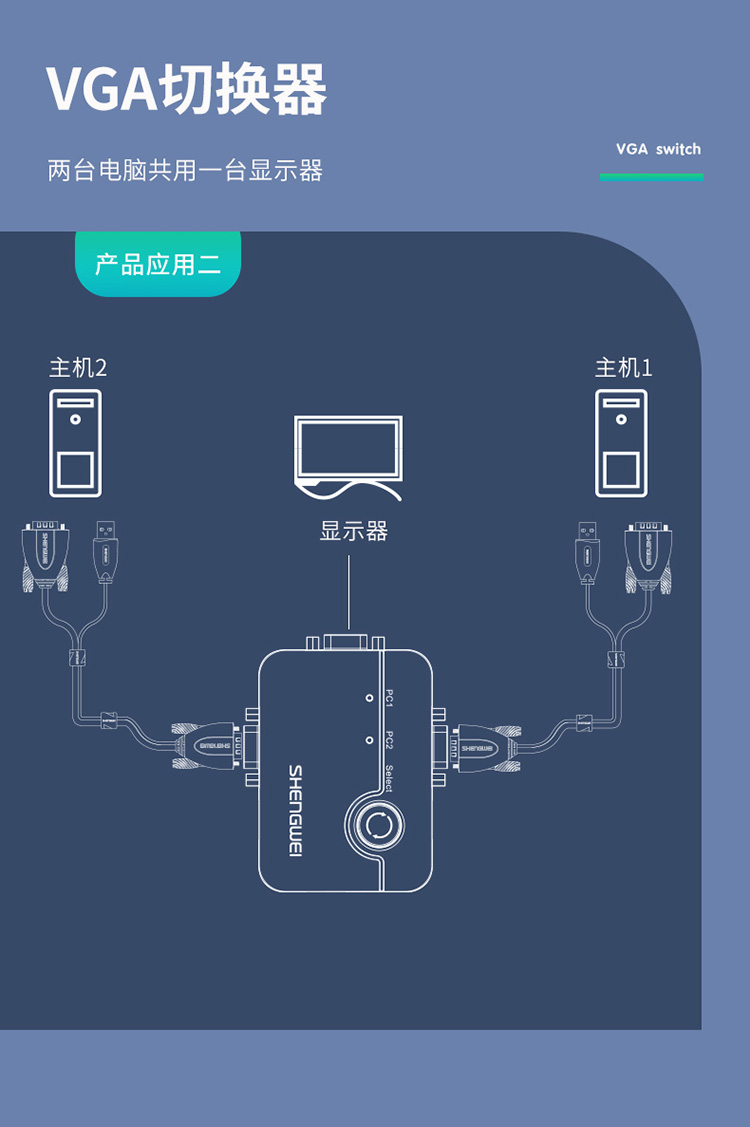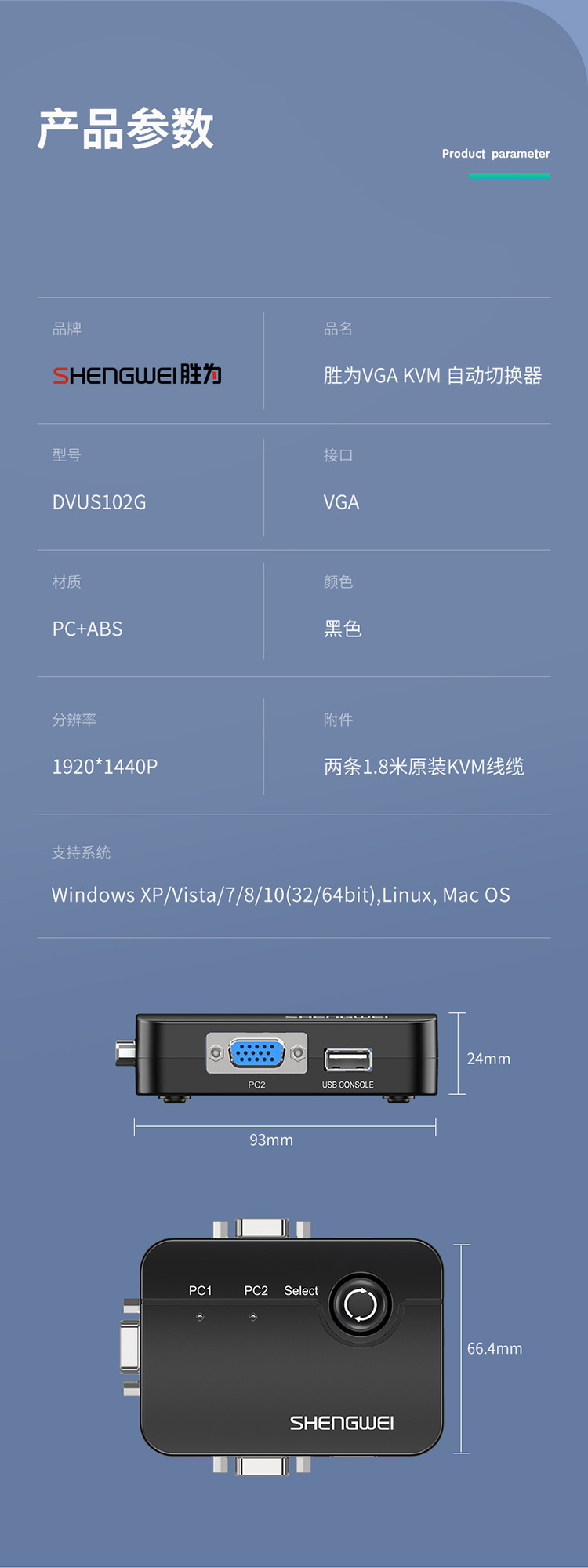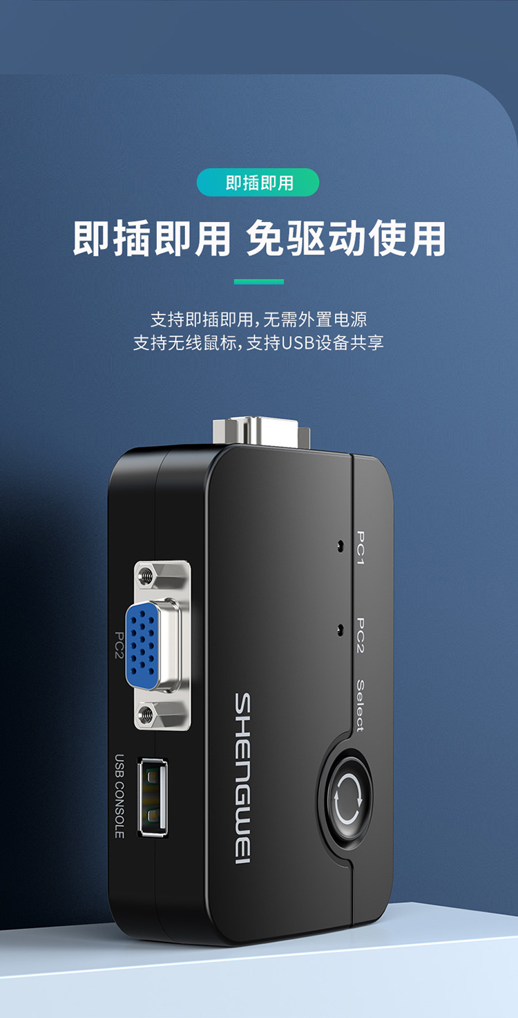 KVM切換器2進(jìn)1出 勝為VGA二進(jìn)一出鍵盤鼠標(biāo)2口USB打印機(jī)共享器 DVUS102G
