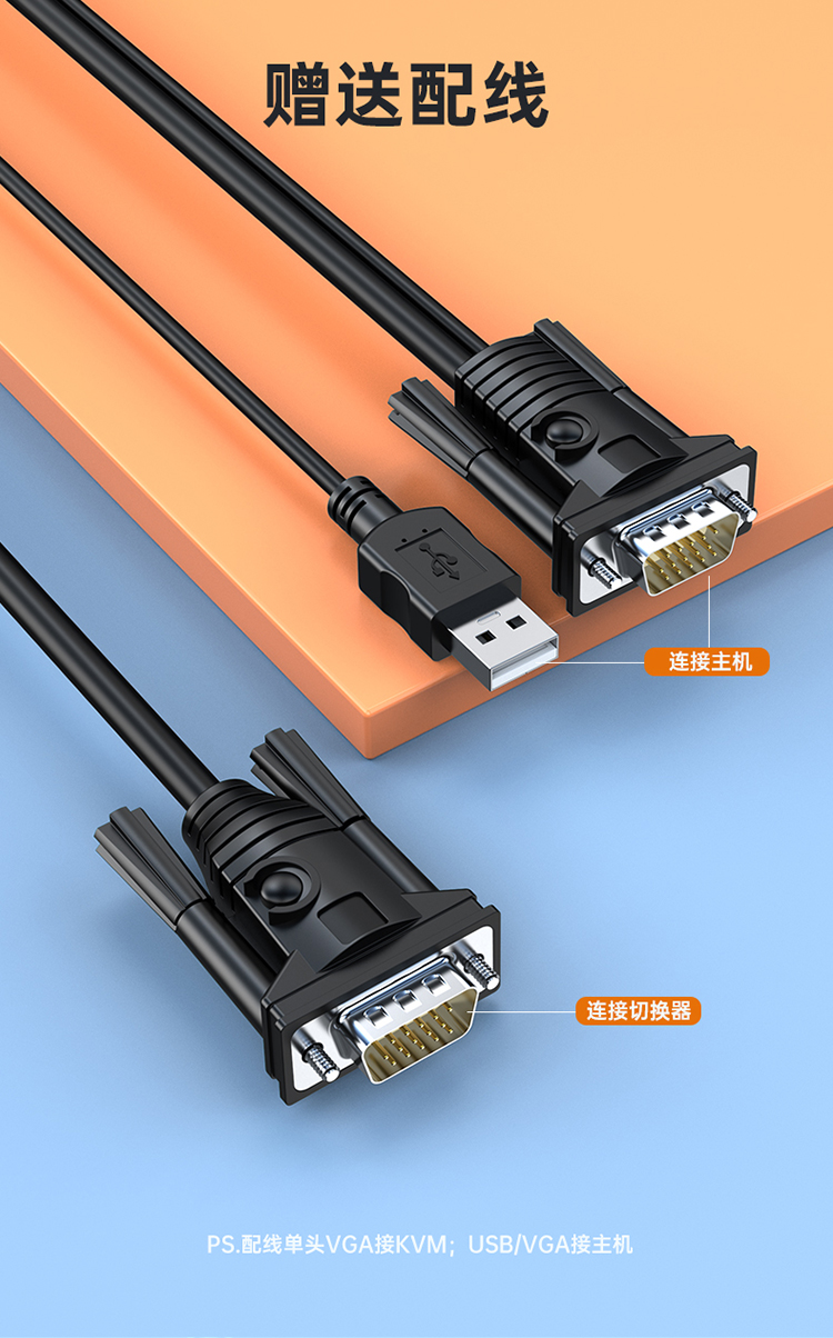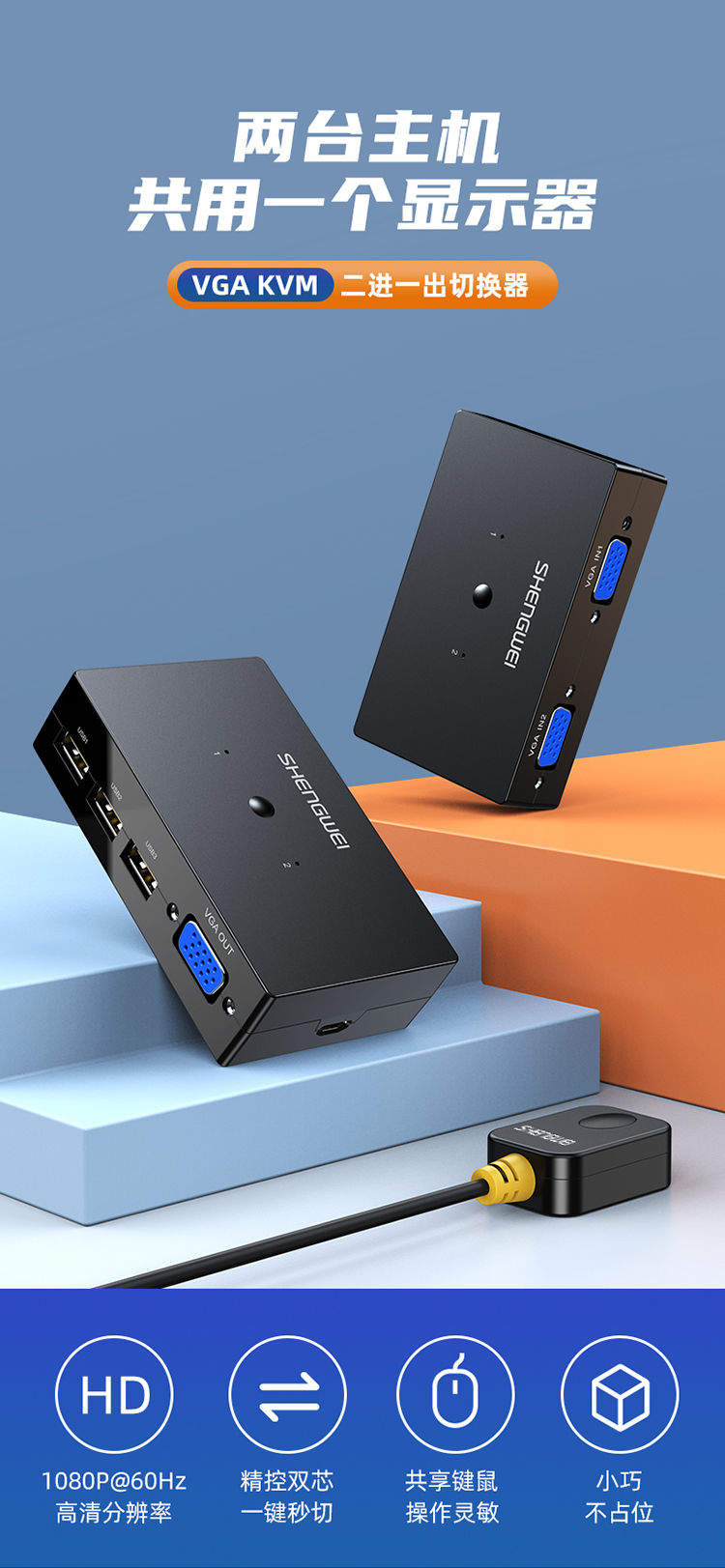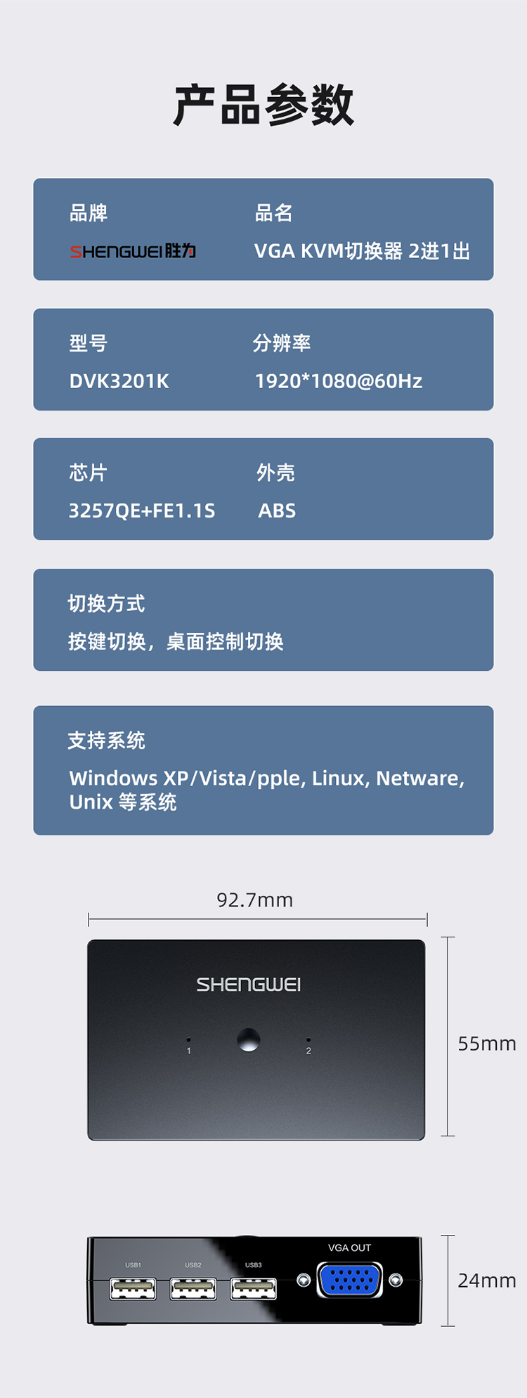 KVM切換器2進(jìn)1出VGA切屏器配線 勝為二進(jìn)一出 電腦USB打印機共享器 DVK3201K