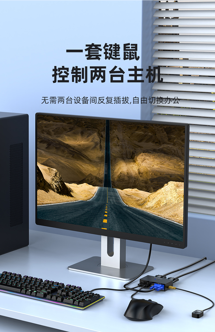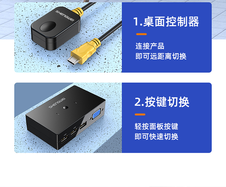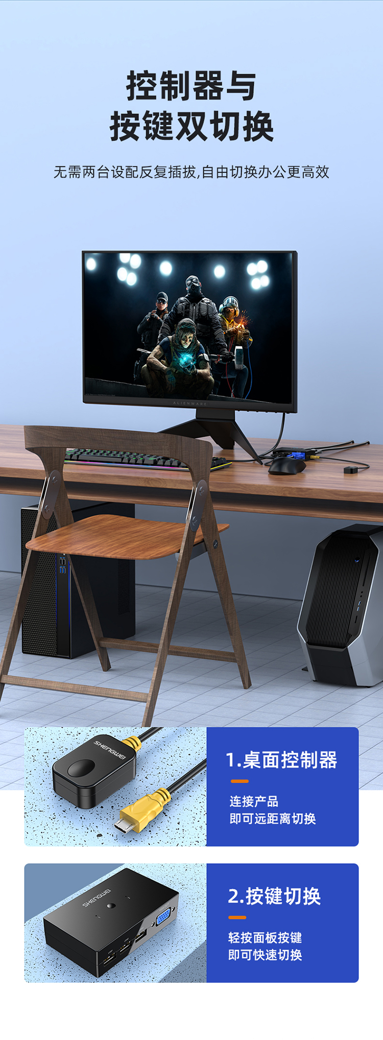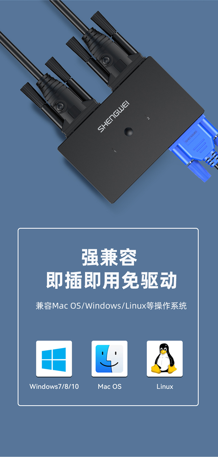 KVM切換器2進(jìn)1出VGA切屏器配線 勝為二進(jìn)一出 電腦USB打印機共享器 DVK3201K